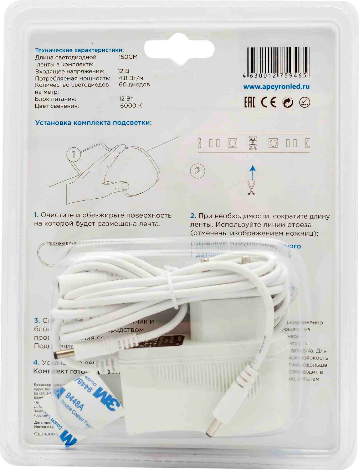 Светодиодная лента Apeyron Electrics SMD 2835 IP65 12В 4,8 Вт 1,5 м