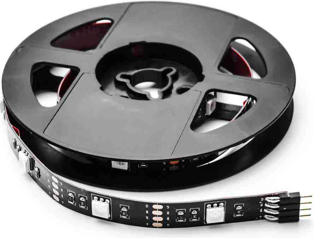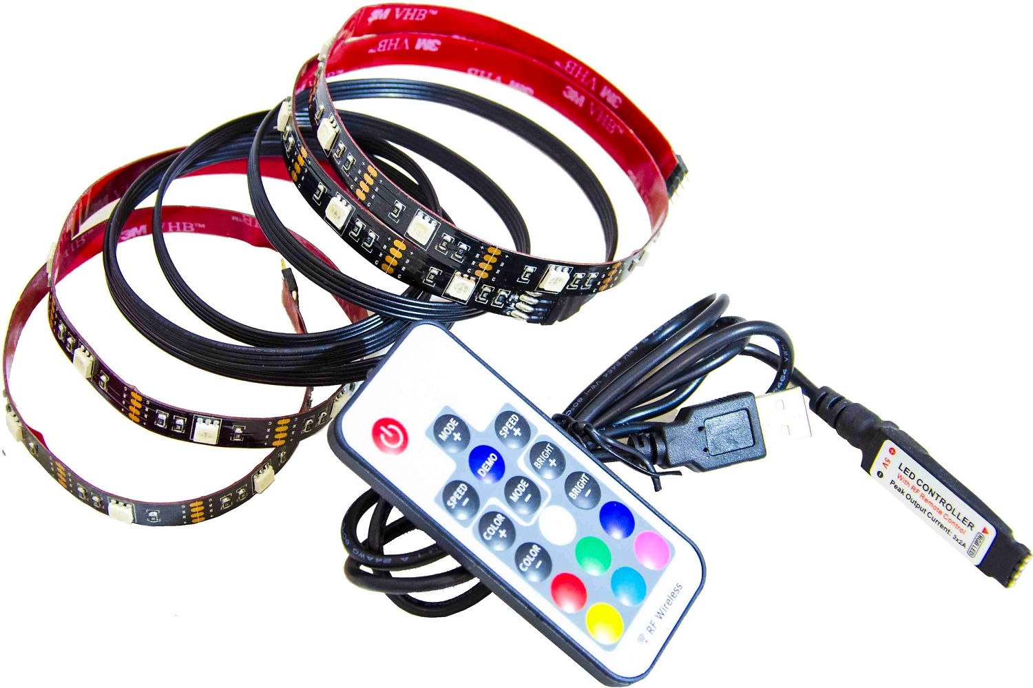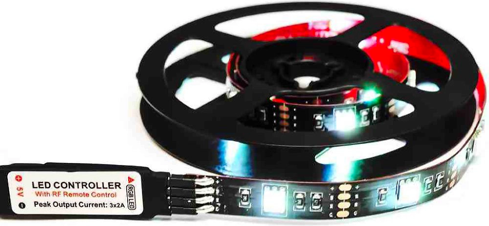 В состав готового комплекта для ТВ подсветки с артикулом с артикулом 10-70 входит 2 отрезка светодиодной ленты по 0,5 метра, которая работает от постоянного тока с напряжением 5В. Данная модель светодиодной ленты является многоцветной. Каждый светодиод такой ленты имеет 3 базовых цвета: синий, зеленый и красный. В зависимости от используемого контроллера можно получить до 256 различных оттенков свечения. Чтобы подключить такой комплект, достаточно воткнуть USB штекер в соответствующий разъем телевизора, компьютера или ноутбука.