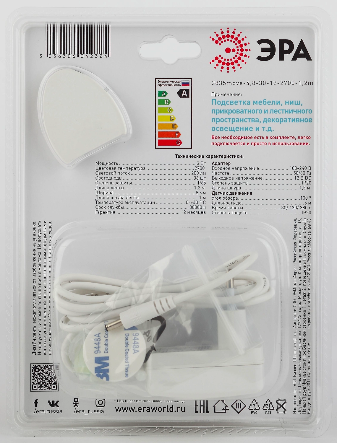 Светодиодная лента ЭРА 2835move-4,8-30-12-2700-1,2m 30 шт 12B 4,8Вт белый 1,2 м