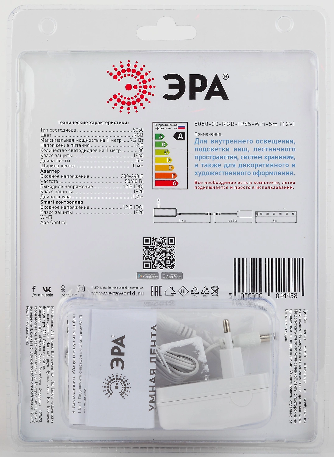 Светодиодная лента ЭРА 5050-30-RGB-IP65-Wifi-5m 30 шт IP65 12B 7,2Вт RGB 5 м