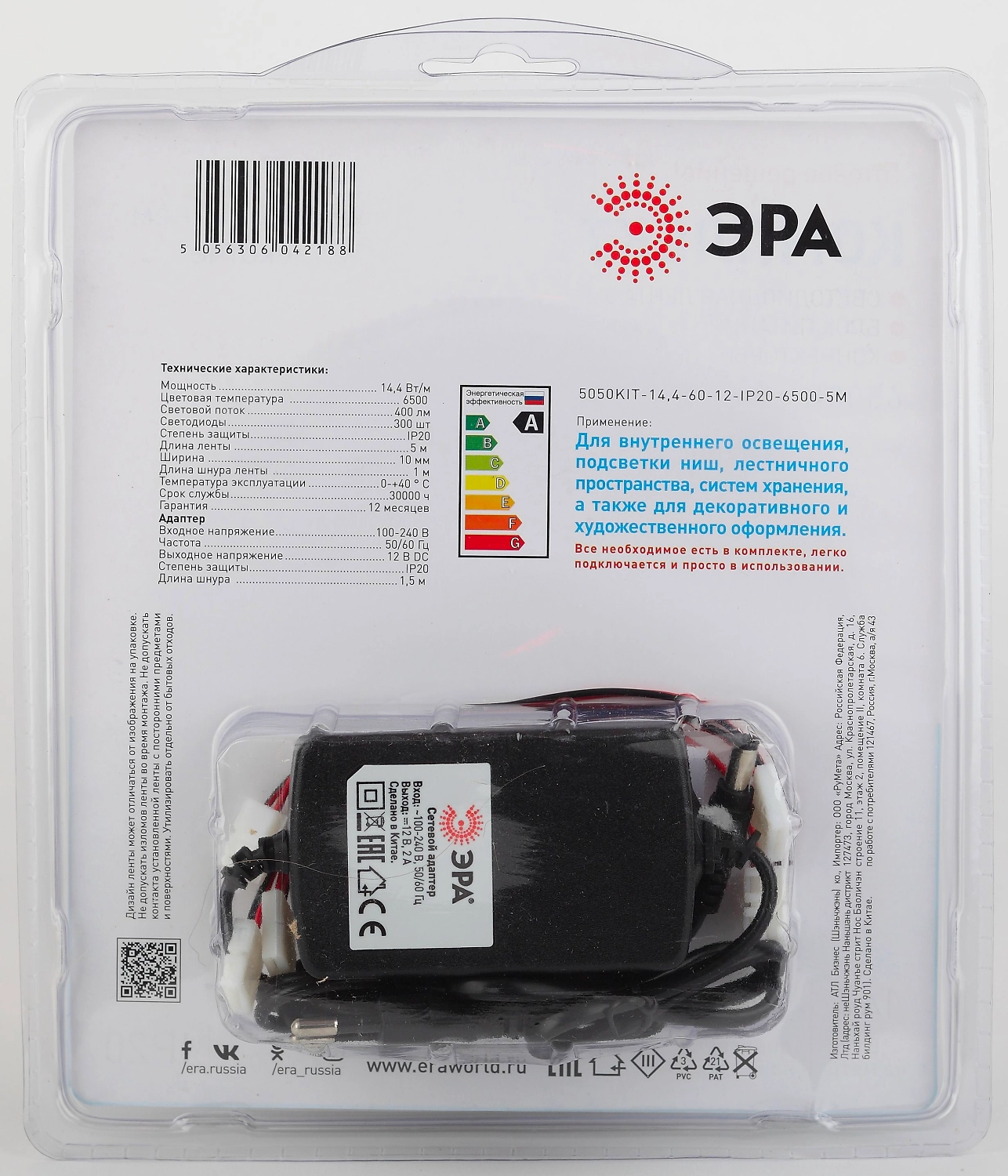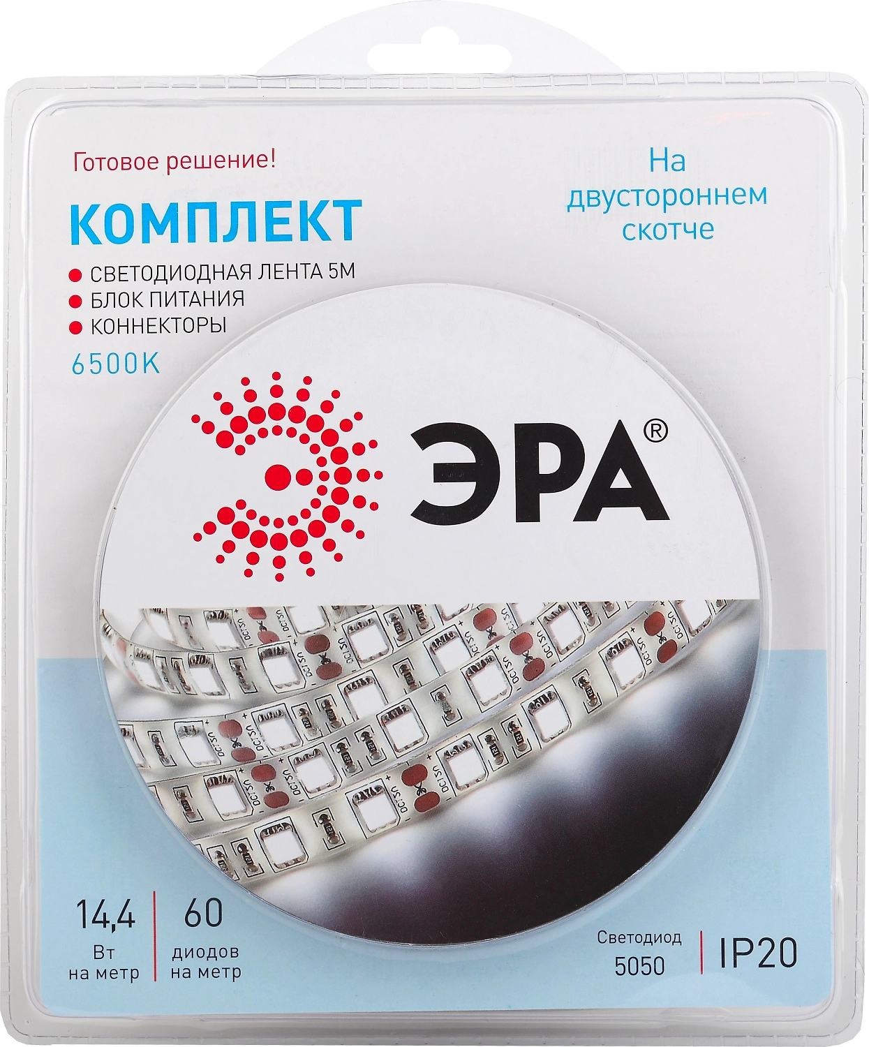 Светодиодная лента ЭРА 5050kit-14,4-60-12-IP20-6500-5m 60 шт 12B 14,4Вт белый 5м