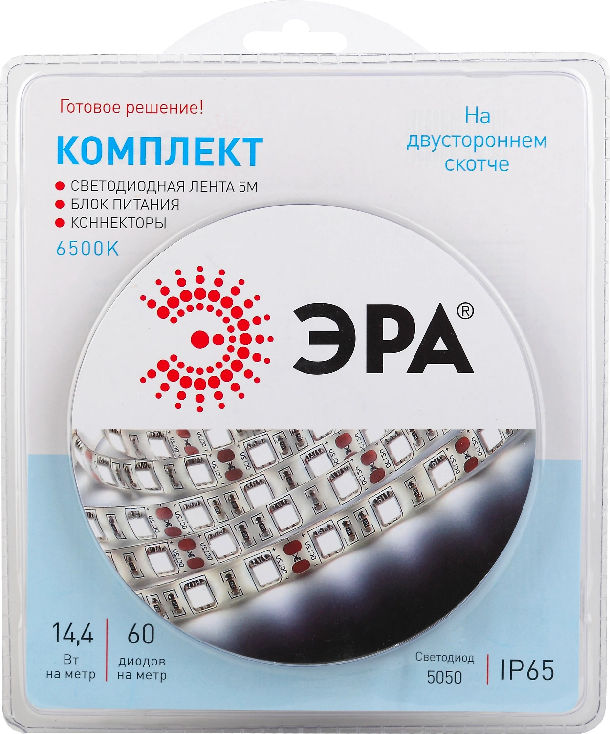 Светодиодная лента ЭРА 5050kit-14,4-60-12-IP65-6500-5m 60 шт 12B 14,4Вт белый 5м