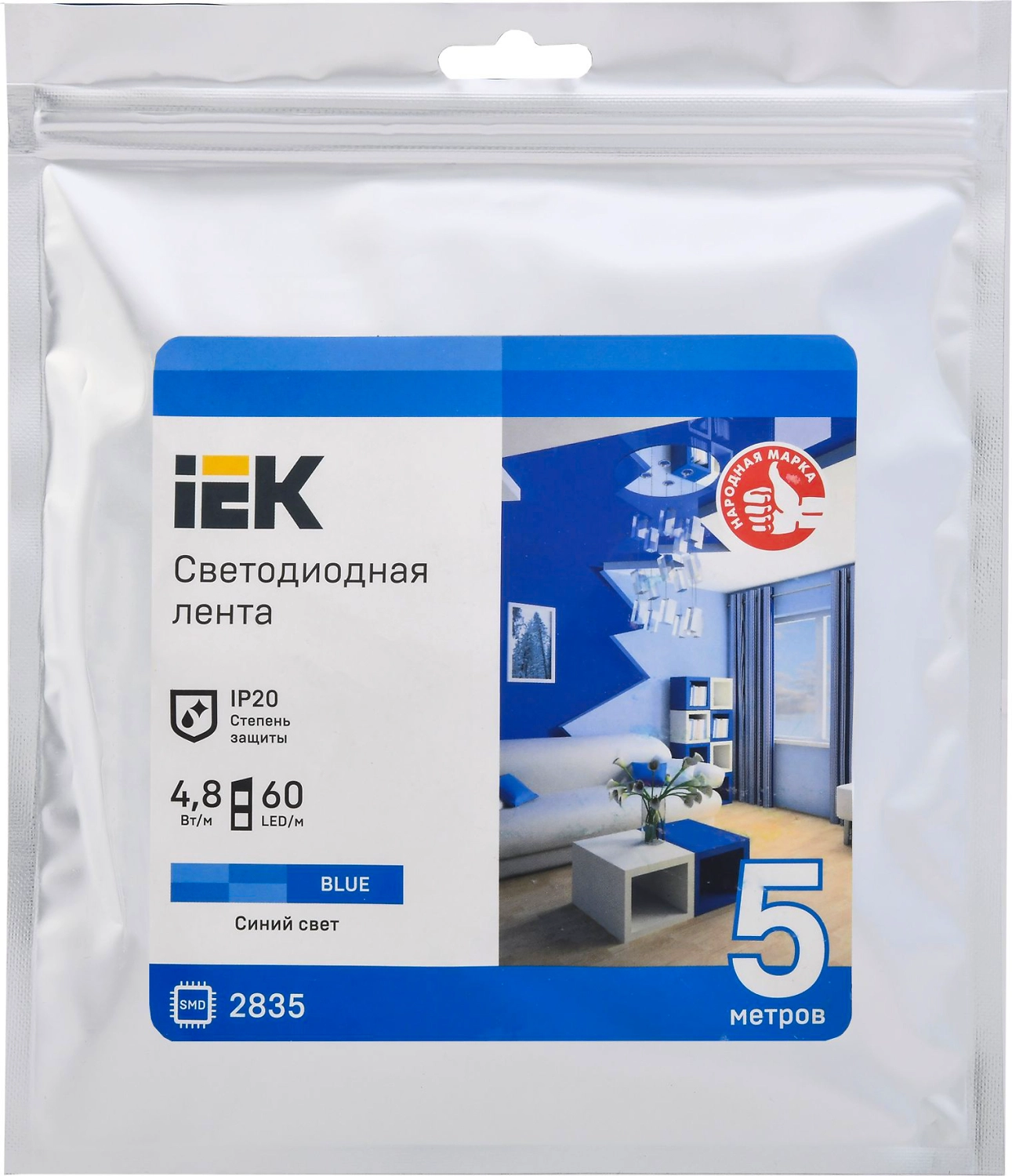 Светодиодная лента IEK SMD 2835 60LED IP20 12В 4,8Вт синий 5 м