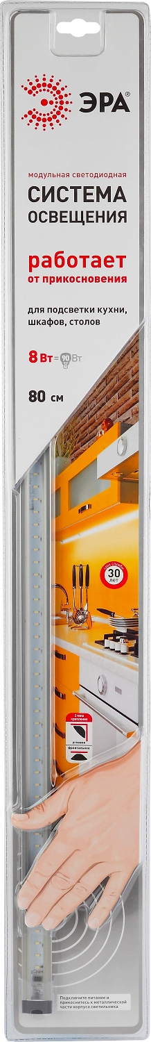 Светодиодная модульная система освещения ЭРА Touchlight, идеально подходит для освещения рабочих поверхностей кухни, письменных столов и шкафов, включается прикосновением, три режима освещенности.