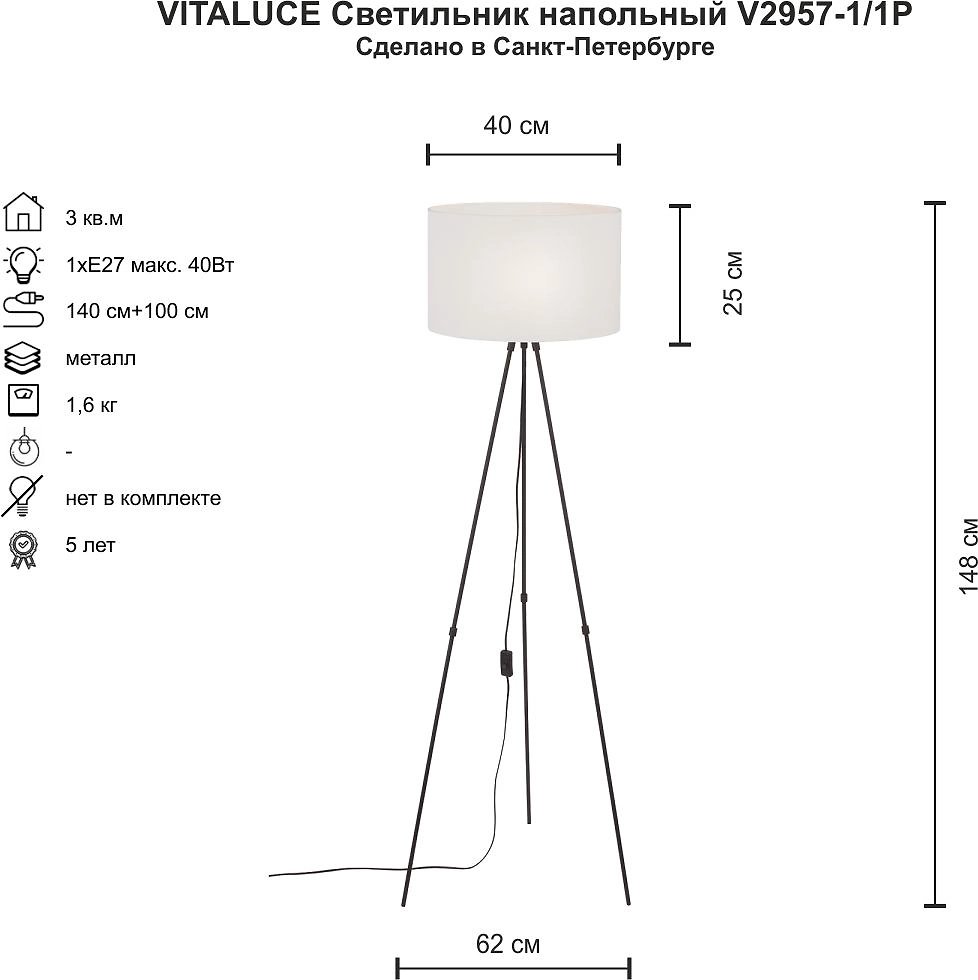 Торшер Vitaluce V2957-1/1P черный 1ХE27Х40Вт