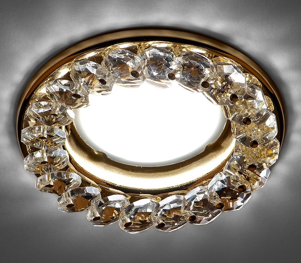 Встраиваемые светильники позволяют создать красивую иллюминацию по всему периметру помещения. Светильник Cristal от Luminarte под золото будет хорошо смотреться в гостиной или на кухне.
