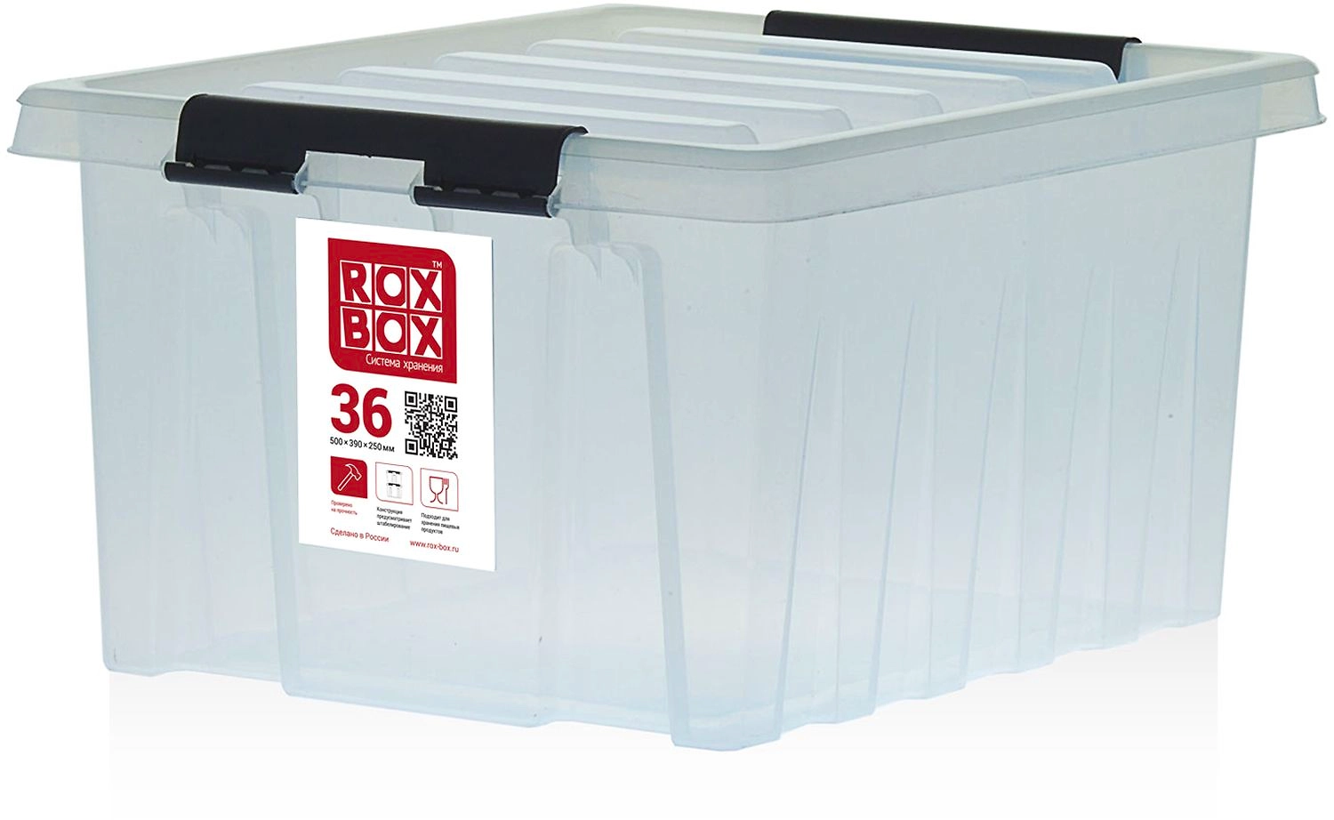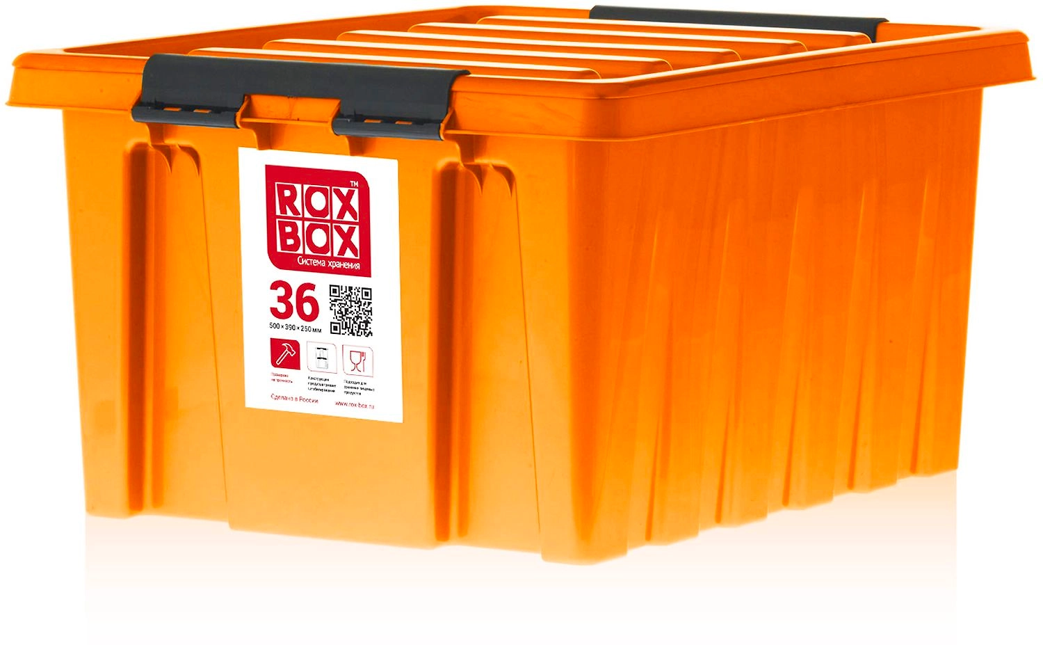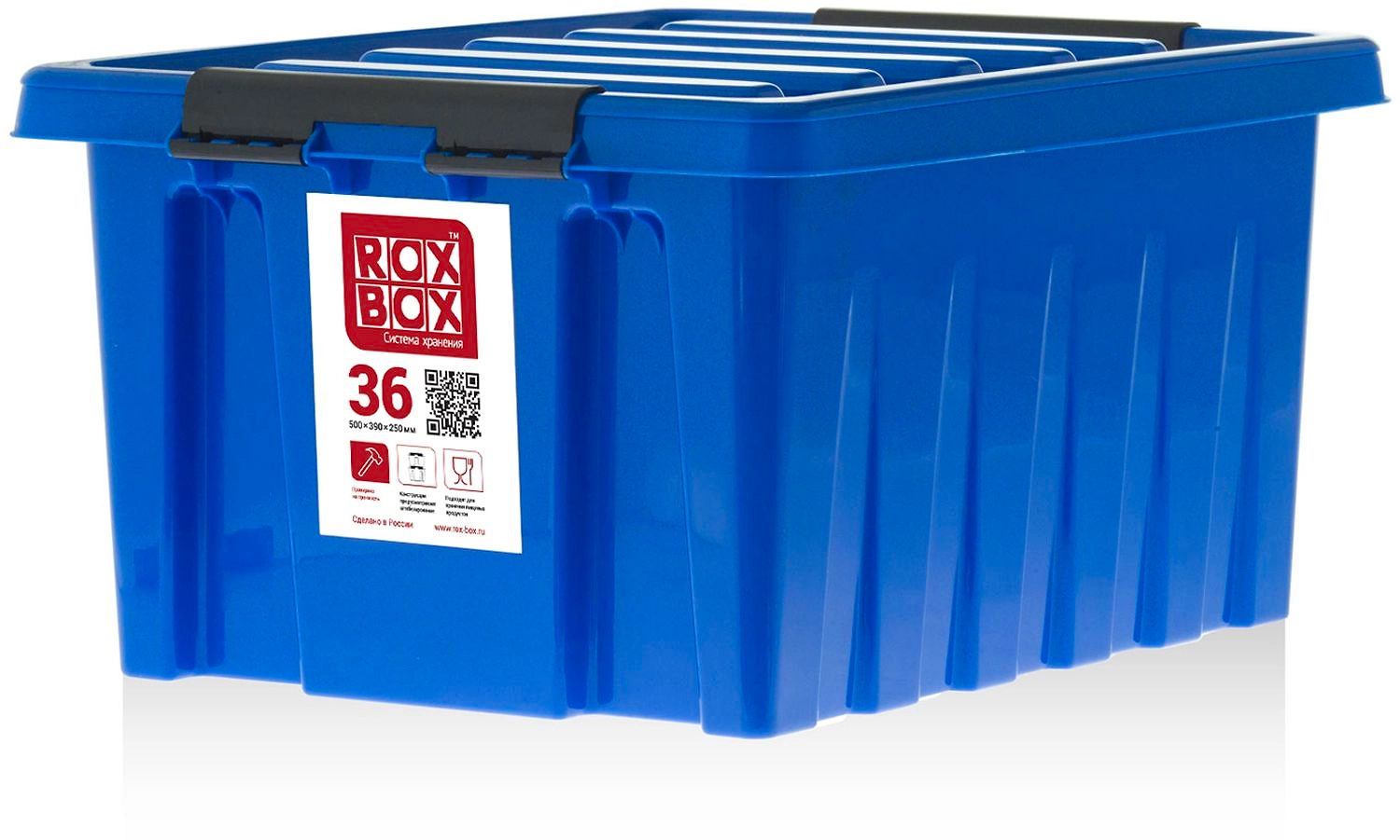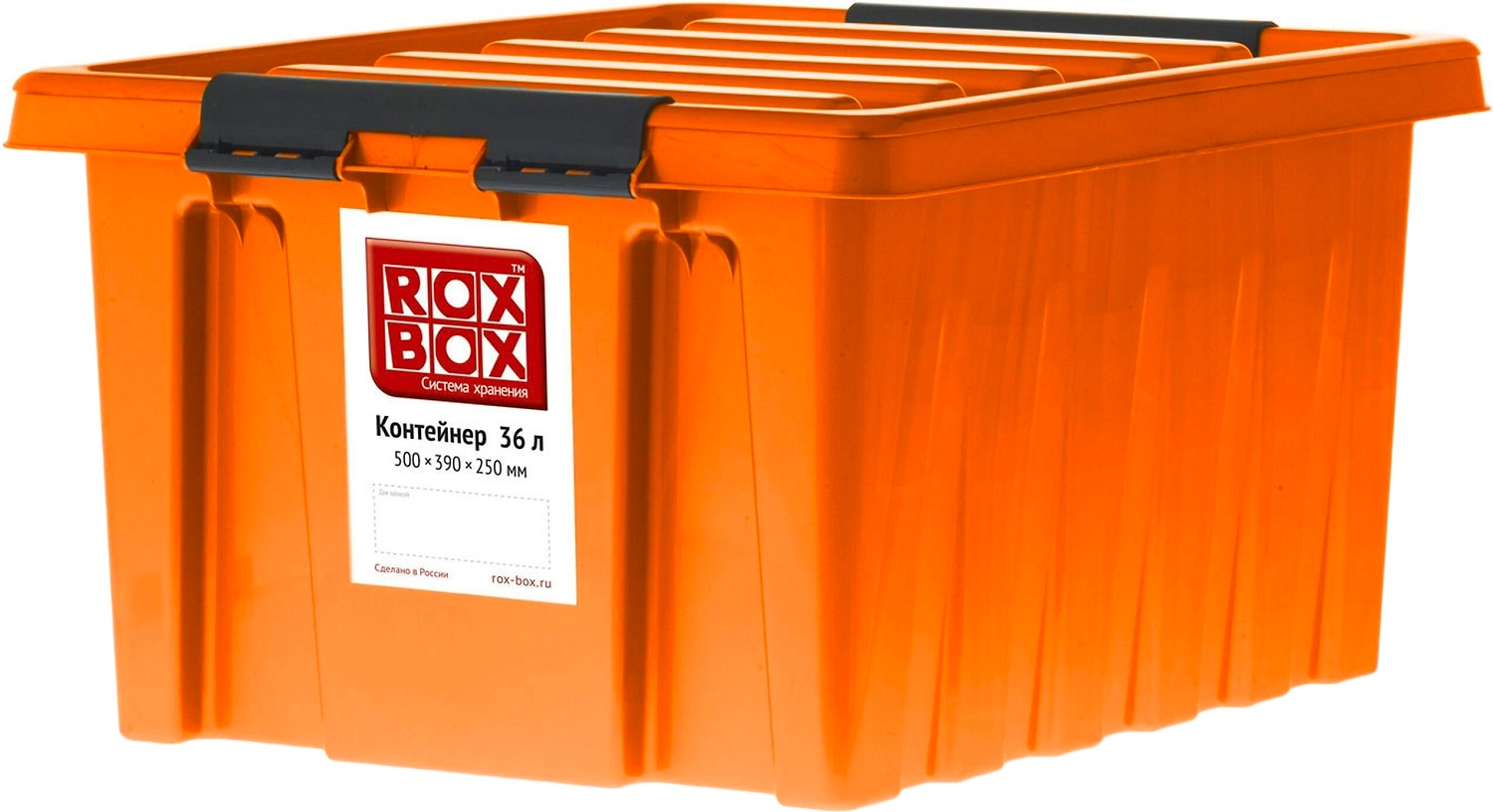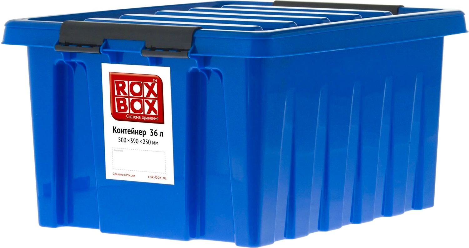 Контейнер ROX BOX с крышкой - вместительная пластиковая тара объемом 36 литров для оптимизации пространства, аккуратного хранения вещей и продуктов. Производится в России, не боится морозов, обладает высокой прочностью, помогает навести порядок в помещении.