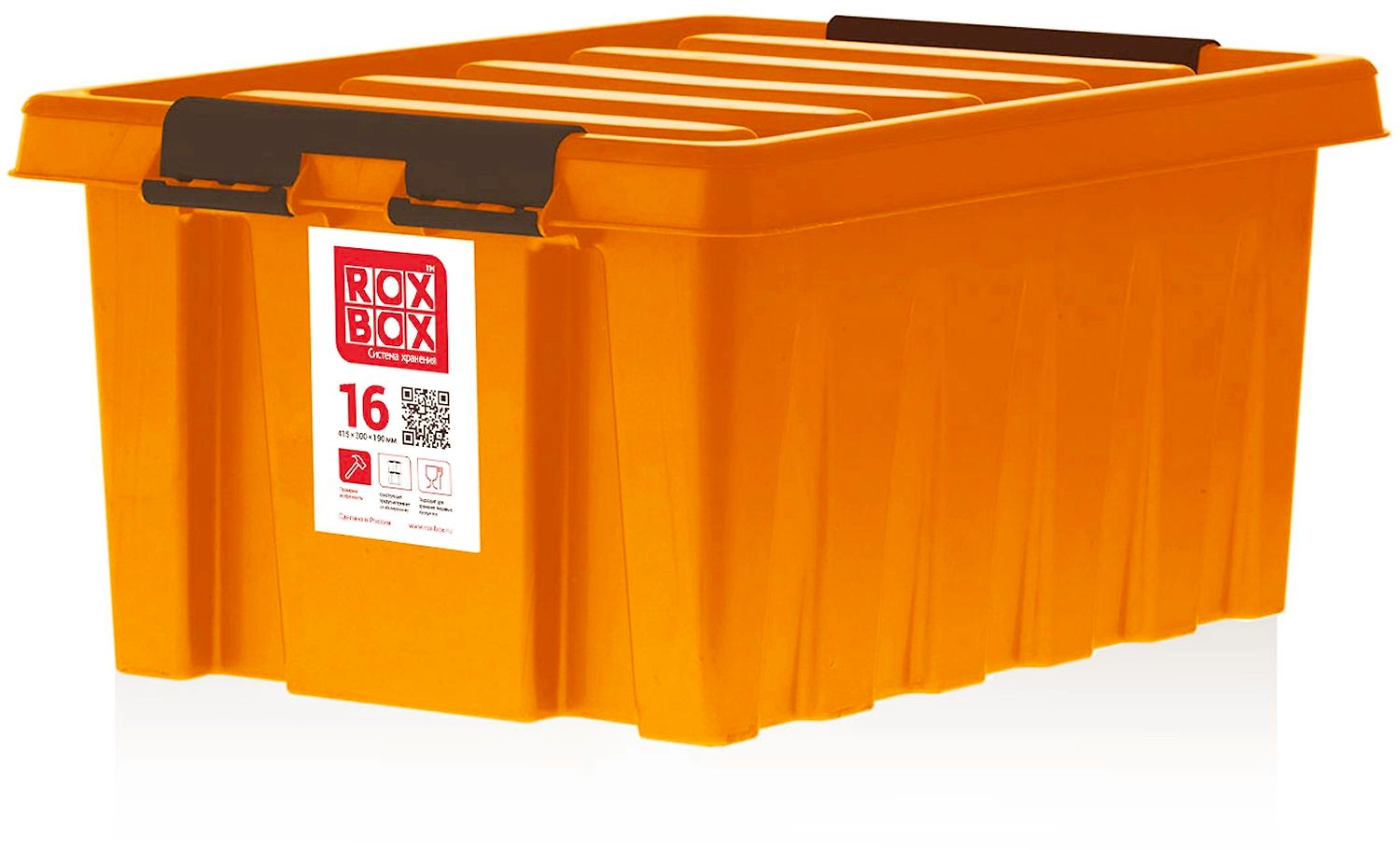 Полимерный контейнер ROXBOX объемом 16 литров - удобный пластиковый короб для хранения вещей и продуктов. Ящик выполнен из прочного полипропилена с крышкой на надежных защелках.