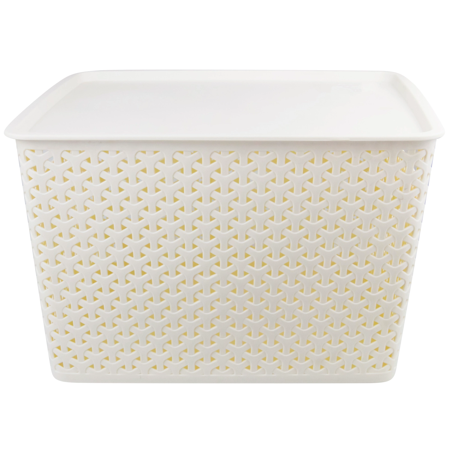 Прямоугольный контейнер с крышкой выполнен из высококачественного пластика технологией плетение.