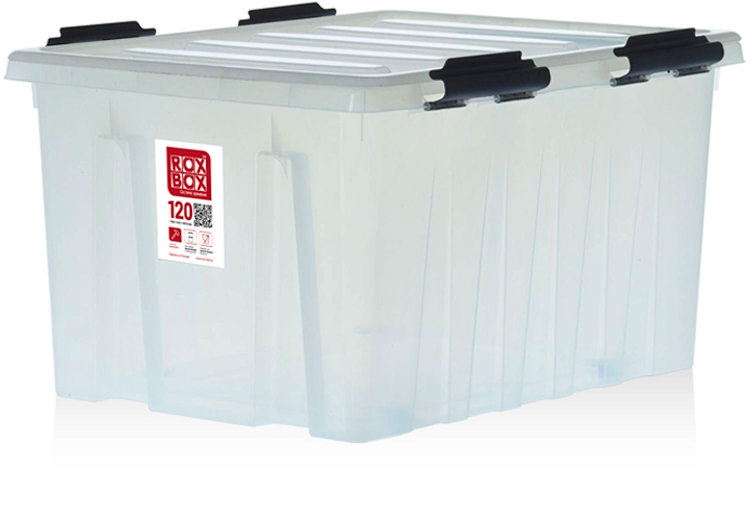 Прозрачный контейнер для хранения ROXBOX объемом 120 л оснащен роликами для удобства перемещения и защелками для плотного прилегания крышки. Вместительный короб из полипропилена помогает навести порядок в спальне, детской, гардеробной, гараже, мастерской, на даче, в других жилых, подсобных и производственных помещениях.