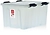 Прозрачный контейнер для хранения ROXBOX объемом 120 л оснащен роликами для удобства перемещения и защелками для плотного прилегания крышки.