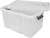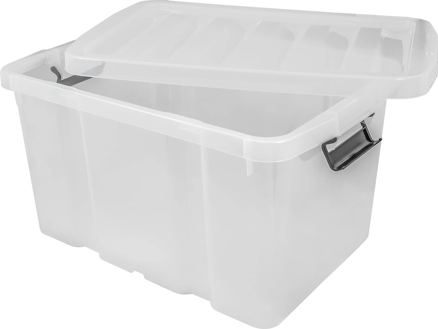Прочный и надежный ящик для хранения PREMIUM 60л с боковыми замками-фиксаторами поможет организовать хранение в квартире и на даче, а также для перевозки вещей при переезде. Благодаря плоской форме легко помещается под кровать. Прозрачный корпус и крышка позволяют видеть содержимое, что удобно для хранения в закрытых гардеробных. В месте крепления ручек предусмотрены выемки для удобного захвата ящика рукой при переноске и снятия с полки. Конструкция корпуса и крышки позволяет штабелировать ящики друг в друга. Безопасный пластик, подходит для контакта с пищей и детскими вещами. Температурный режим: -5 +70°С. Размеры (ДхШхВ): 58х39,5х31,5см