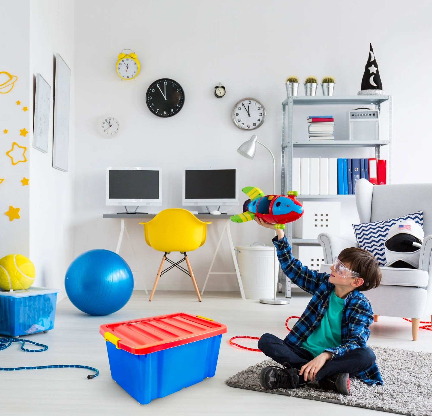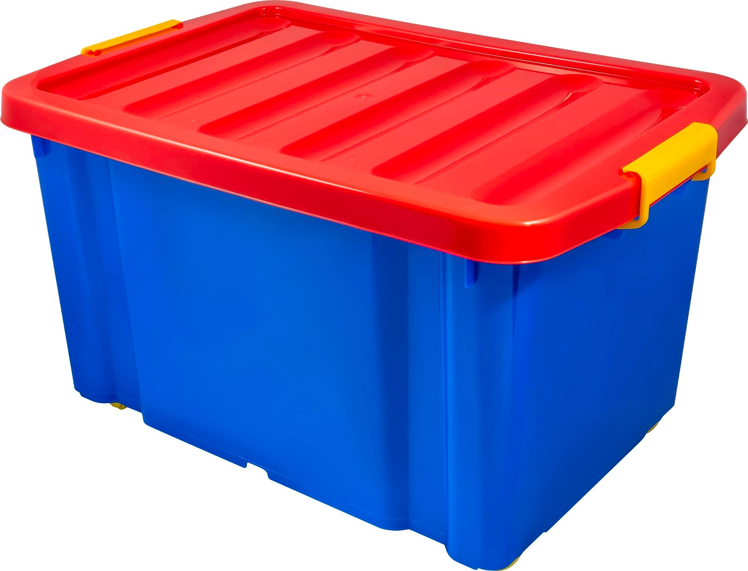 Ящик JUMBO на роликах ребристая крышка 60л предназначен для хранения игрушек и других детских вещей. Боковые замки-фиксаторы надежно закрывают крышку.