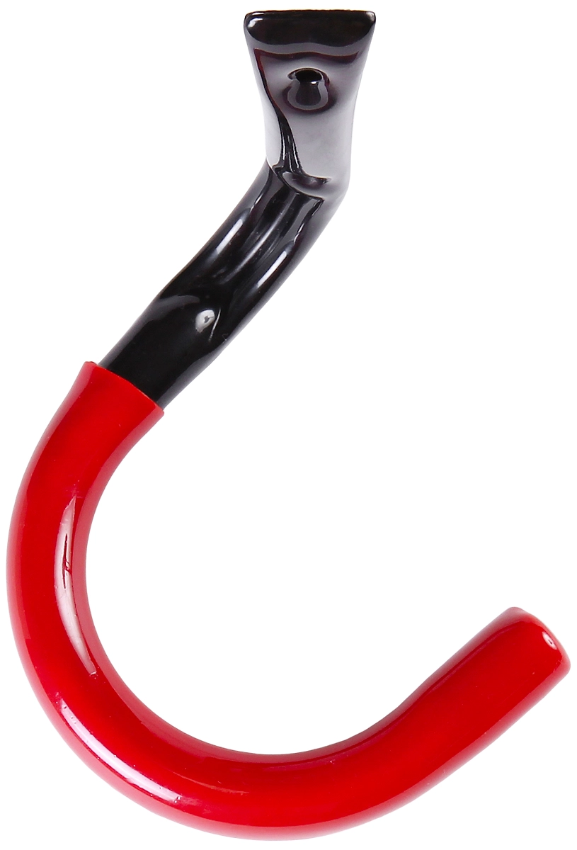 Изогнутый крючок для хранения велосипеда. Можно устанавливать как на потолке, так и на стене. Чтобы зафиксировать велосипед, необходимо зацепить его за переднее или за заднее колесо. Для оптимизации пространства рекомендуется закреплять крючок в углу. Прорезиненная поверхность предотвращает скольжение.