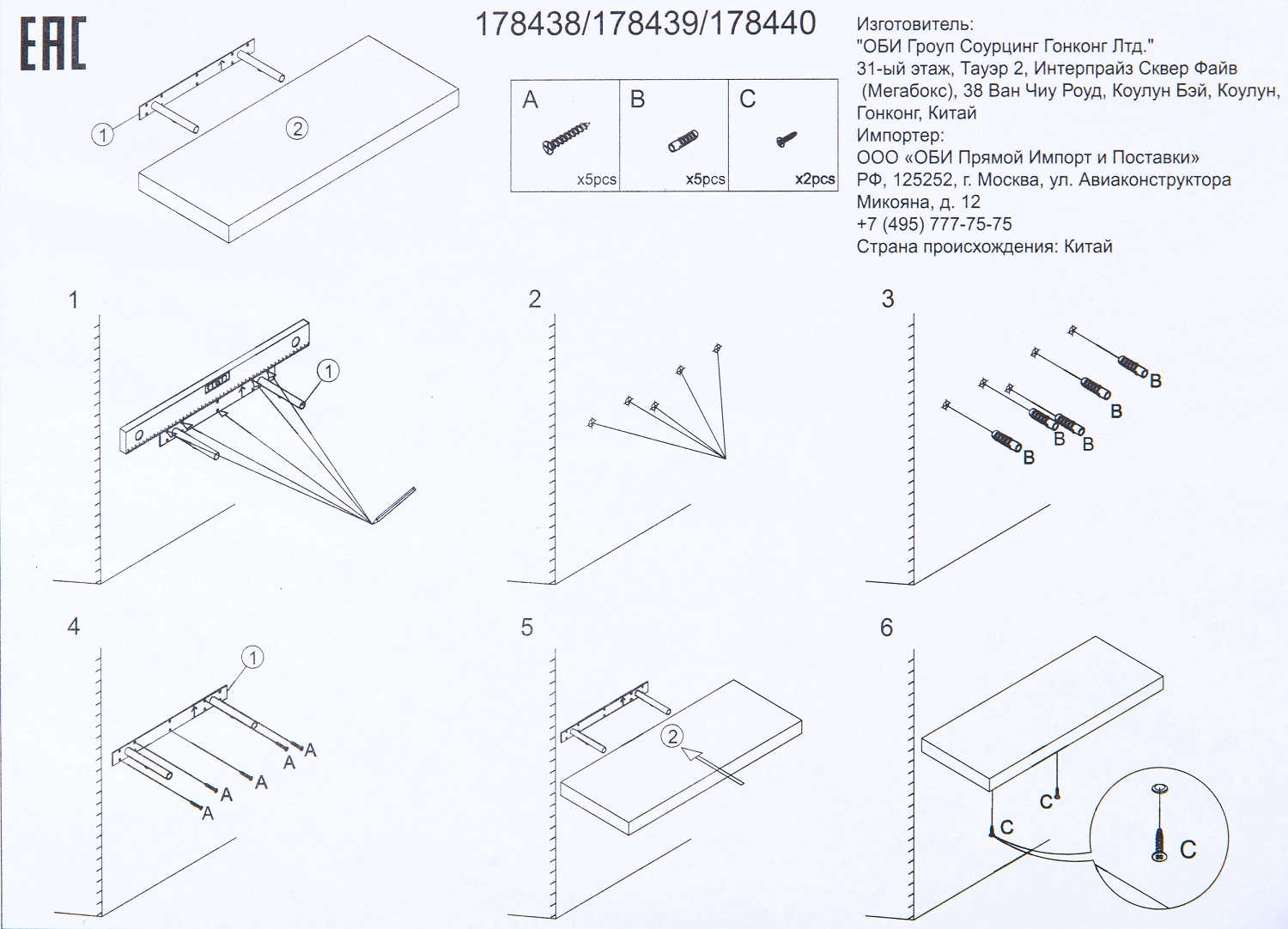 Настенная полка из мдф в комплекте с крепежными элементами кронштейны Т-образной формы и винты.