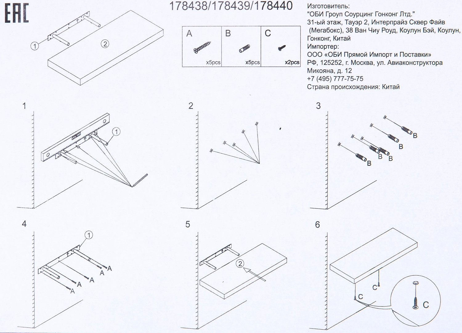 Настенная полка из мдф в комплекте с крепежными элементами кронштейны Т-образной формы и винты.