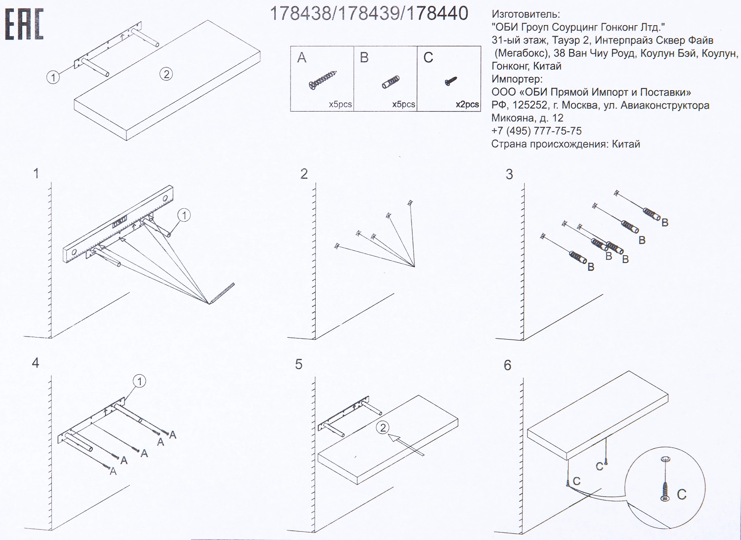 Настенная полка из МДФ в комплекте с крепежными элементами кронштейны Т-образной формы и винты.