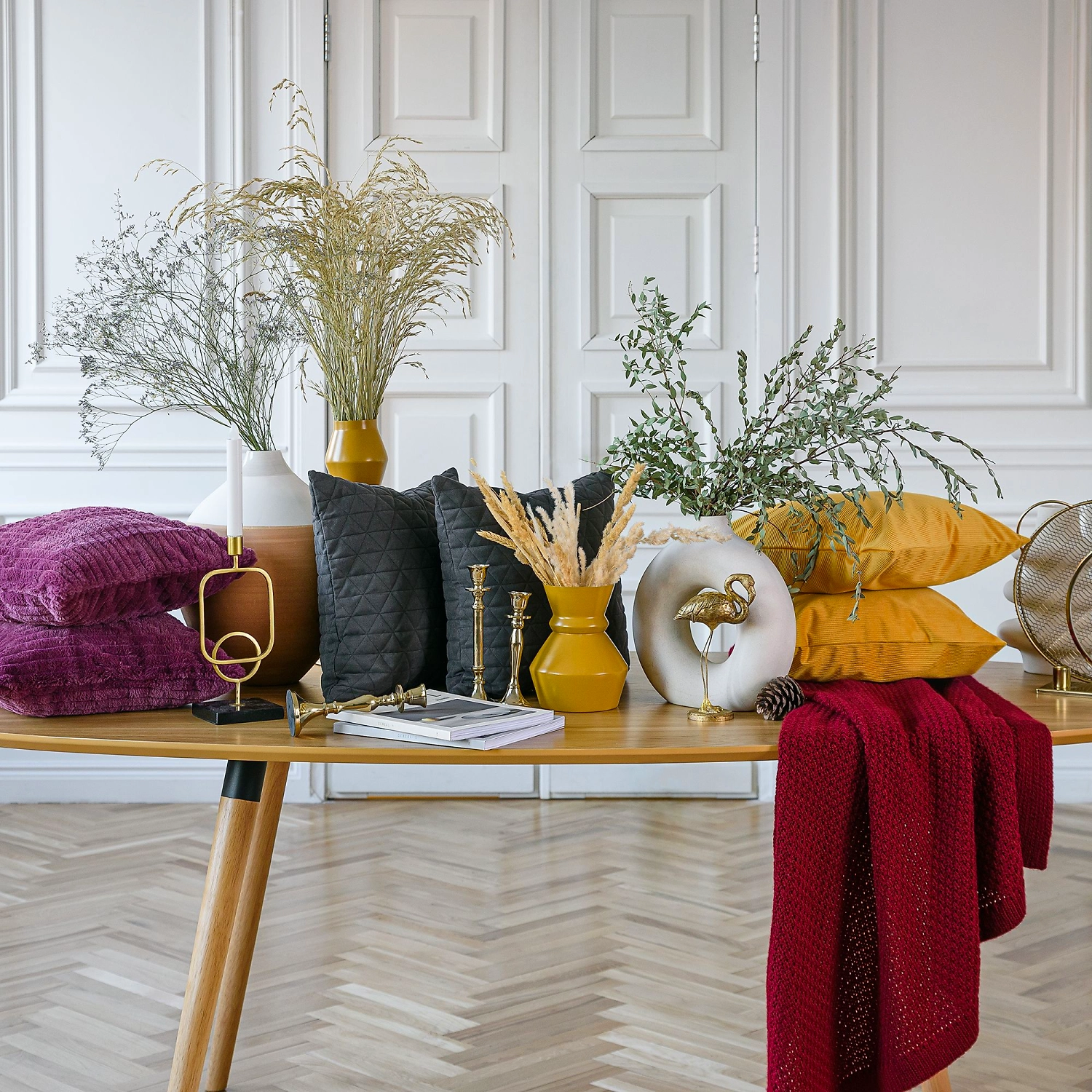 Двусторонняя бархатная подушка размером 40×40 см создана из полиэстера. Он исключает появление пылевых клещей, что делает подушку гипоаллергенной. Наволочка на потайной молнии упрощает уход за изделием — она легко снимается для чистки или стирки. Благодаря плотному наполнителю изделие не проминается и не деформируется, надолго сохраняя первозданный внешний вид. Подушка в сочетании с другими аксессуарами из коллекции позволяет создать гармоничный интерьер в едином стиле.