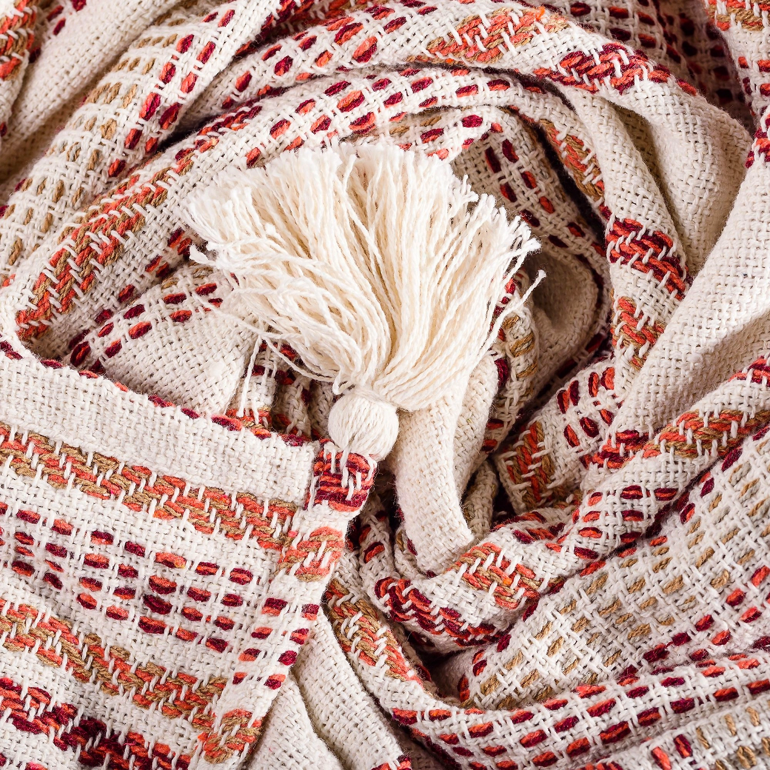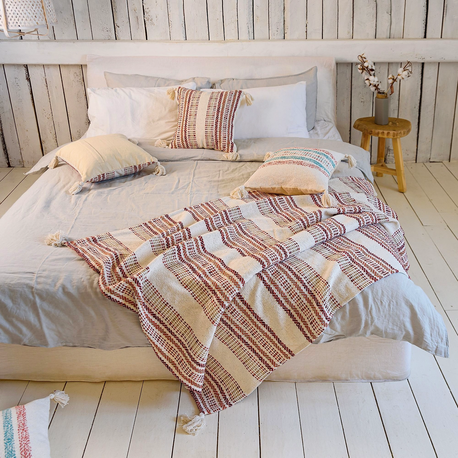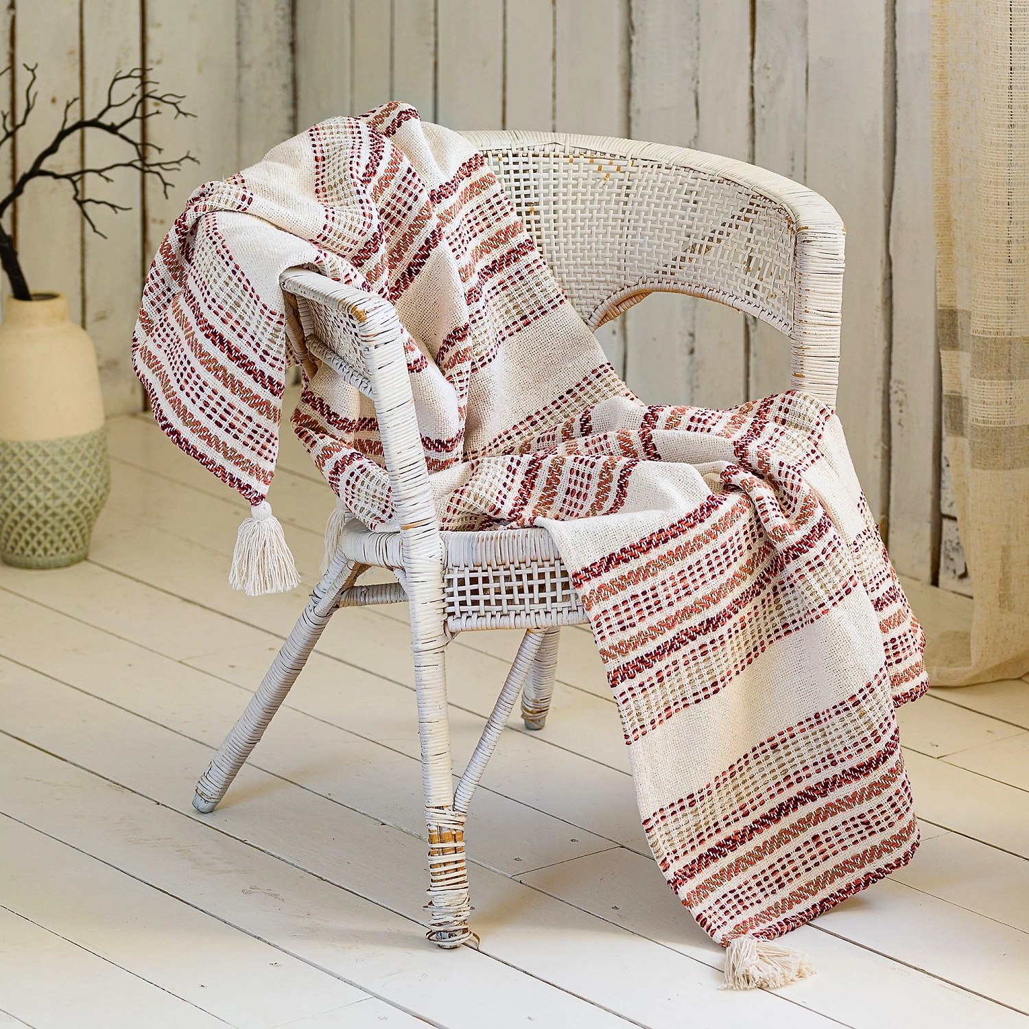 Плед с кисточками размером 125 х 152 см. Изделие изготовлено из смеси хлопка и полиэстера, что делает его прочным и износоустойчивым.
