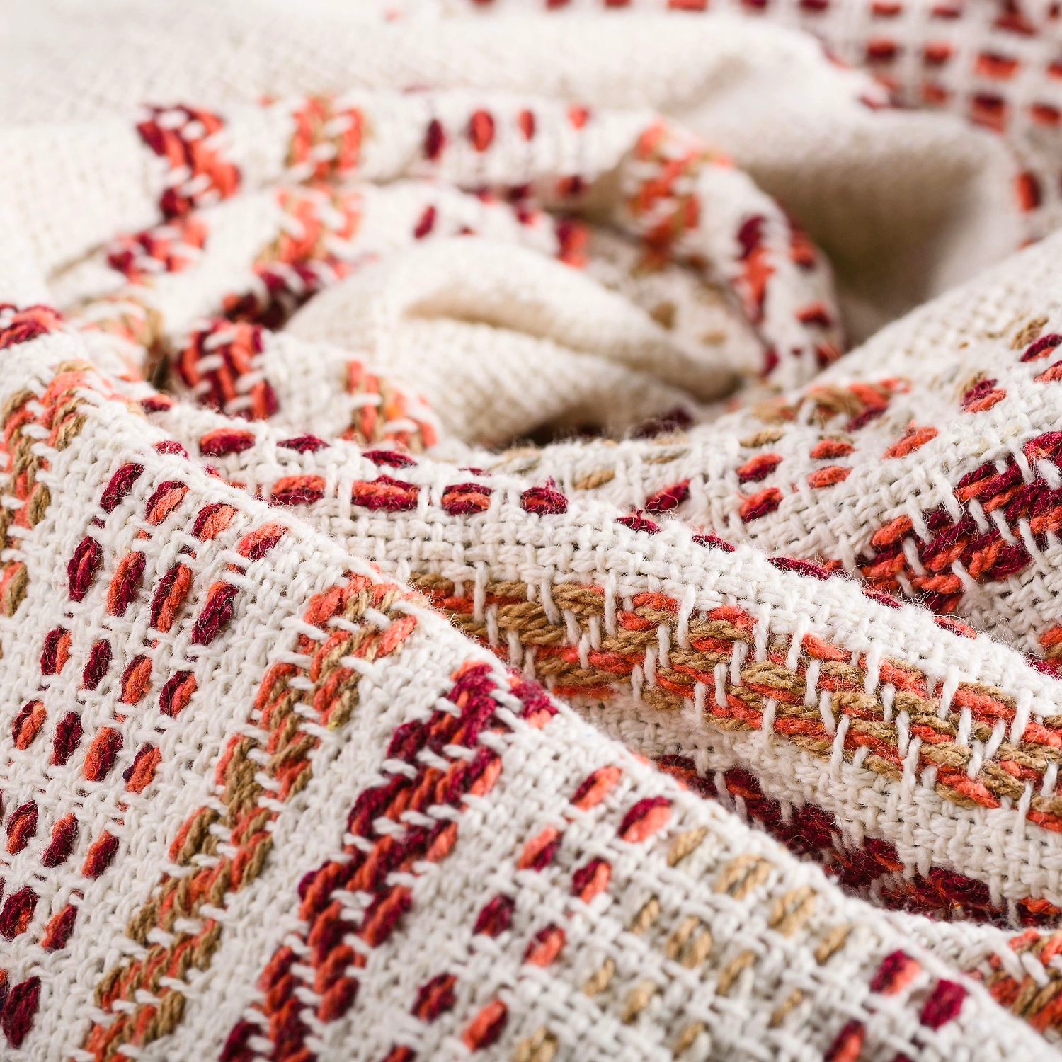 Плед с кисточками размером 125 х 152 см. Изделие изготовлено из смеси хлопка и полиэстера, что делает его прочным и износоустойчивым. Его можно стирать в стиральной машине с соблюдением температурного режима. Выполняет не только утилитарную функцию, согревая холодными вечерами, но и эстетическую, добавляя в интерьер краски закатного солнца пустыни. Выигрышно смотрится в сочетании с подушками и шторой из коллекции Desert.