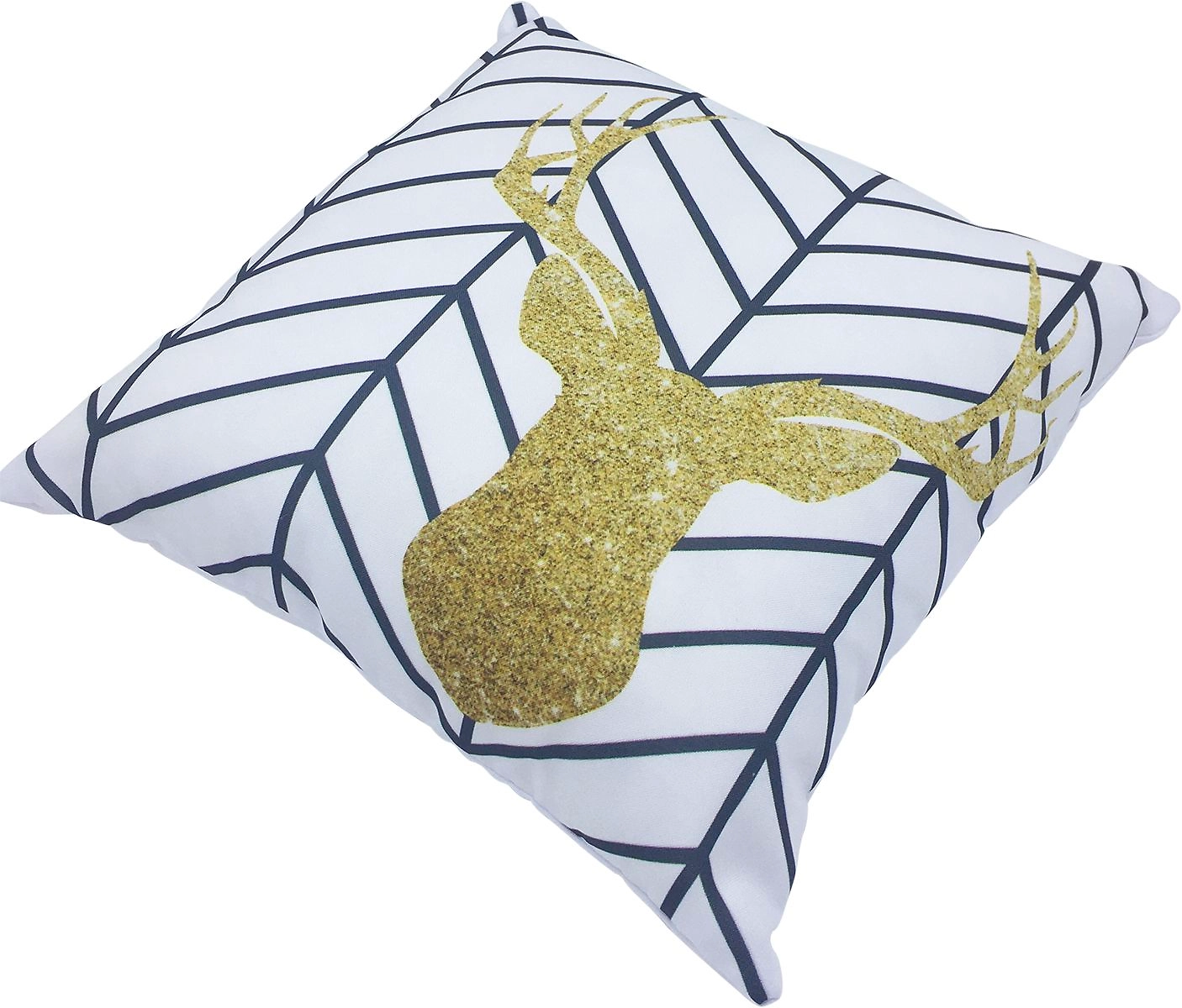 Декоративная подушка Belezza Олень сочетает сразу несколько модных трендов: яркий и динамичный геометрический мотив и крупный принт с золотыми блестками. Изделие станет отличным дополнение к зимнему или новогоднему декору, освежит и украсит интерьер.