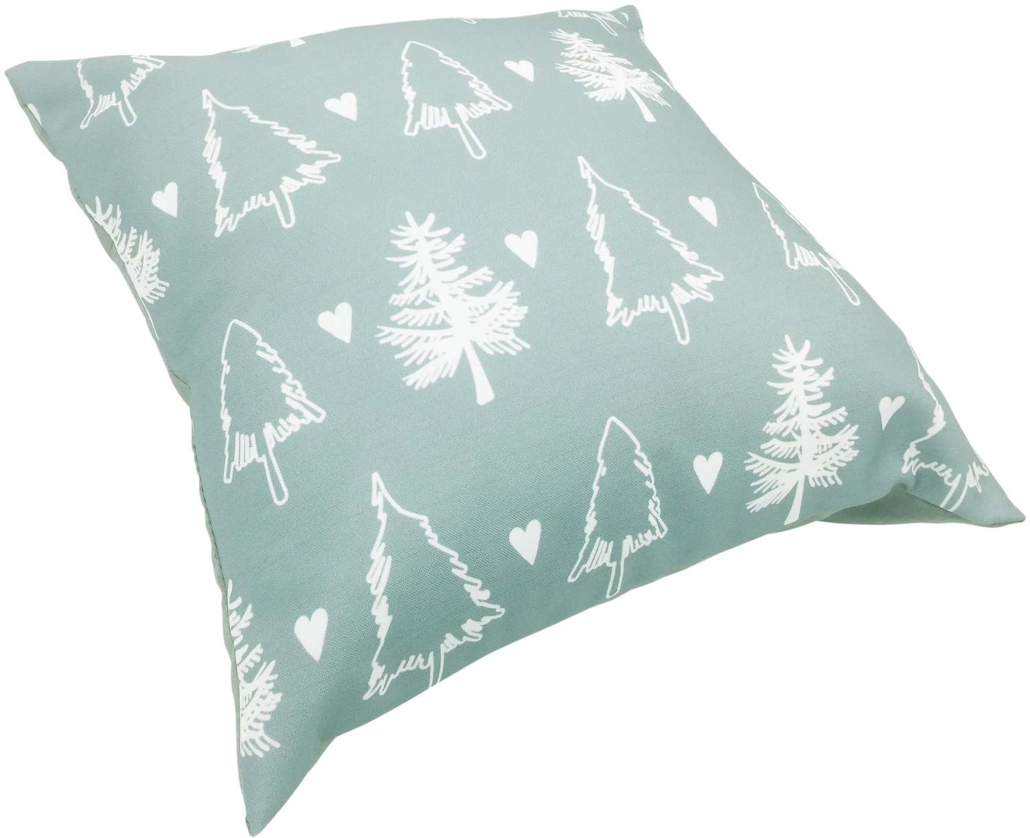 Декоративная подушка с изображением елочек - отличное дополнение к зимнему или новогоднему декору. Изделие выполнено в неярких пастельных тонах и красиво смотрится на диване или кресле любого цвета.