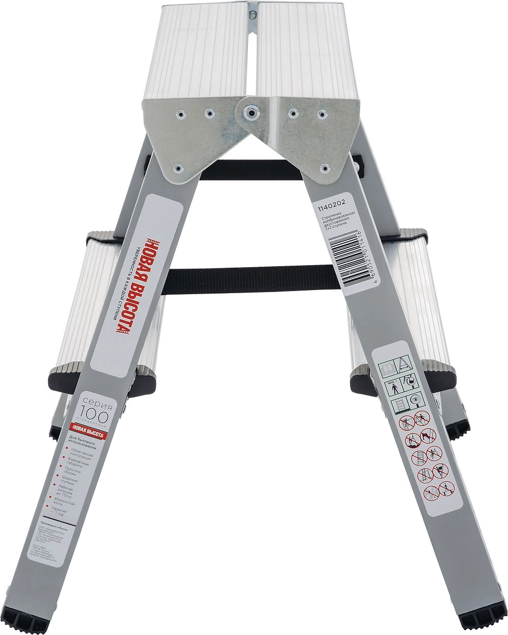 Прочная стальная двухсторонняя стремянка-подставка Новая Высота 2x2 алюминиевые ступени для бытовых работ.