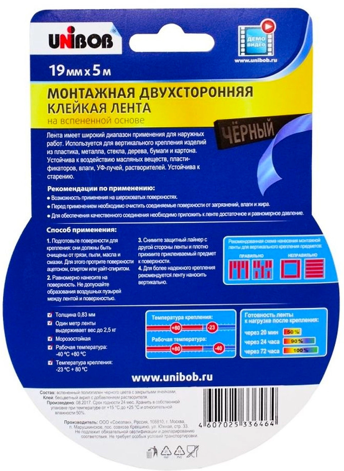 Клейкая лента UNIBOB 47036 19 мм х 5 м черная