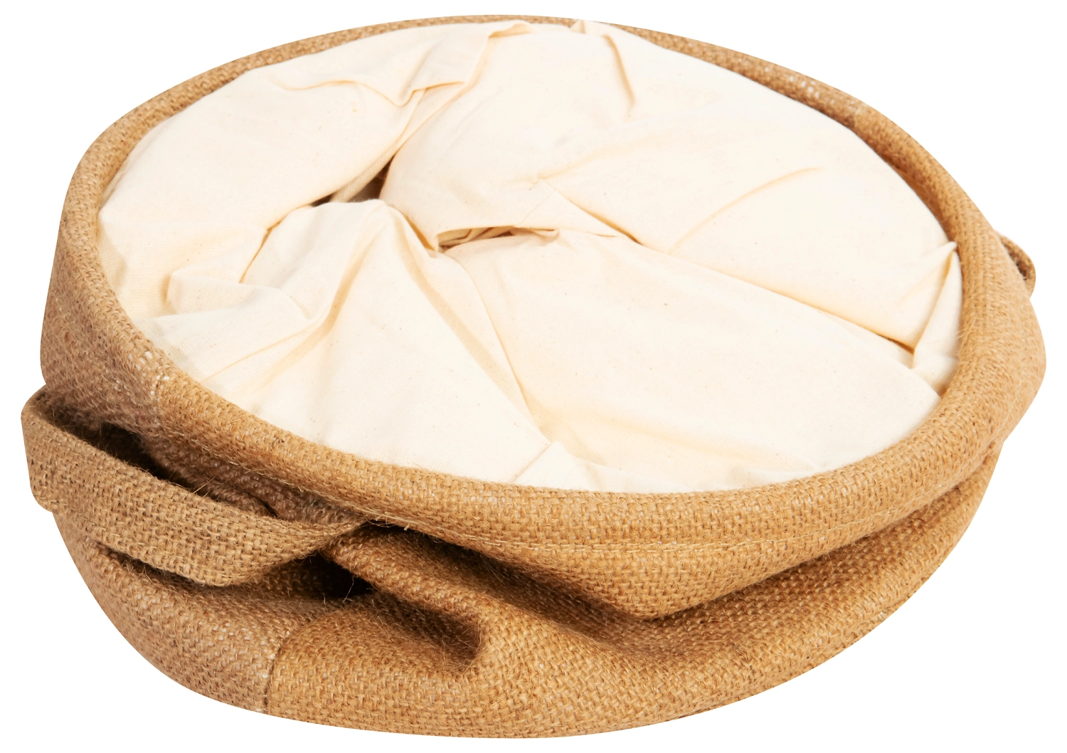 Корзина бытовая для белья и хранения предметов обихода из джутовой натуральной ткани с ручками и тканевой подкладкой. Обработана антисептическим составом.