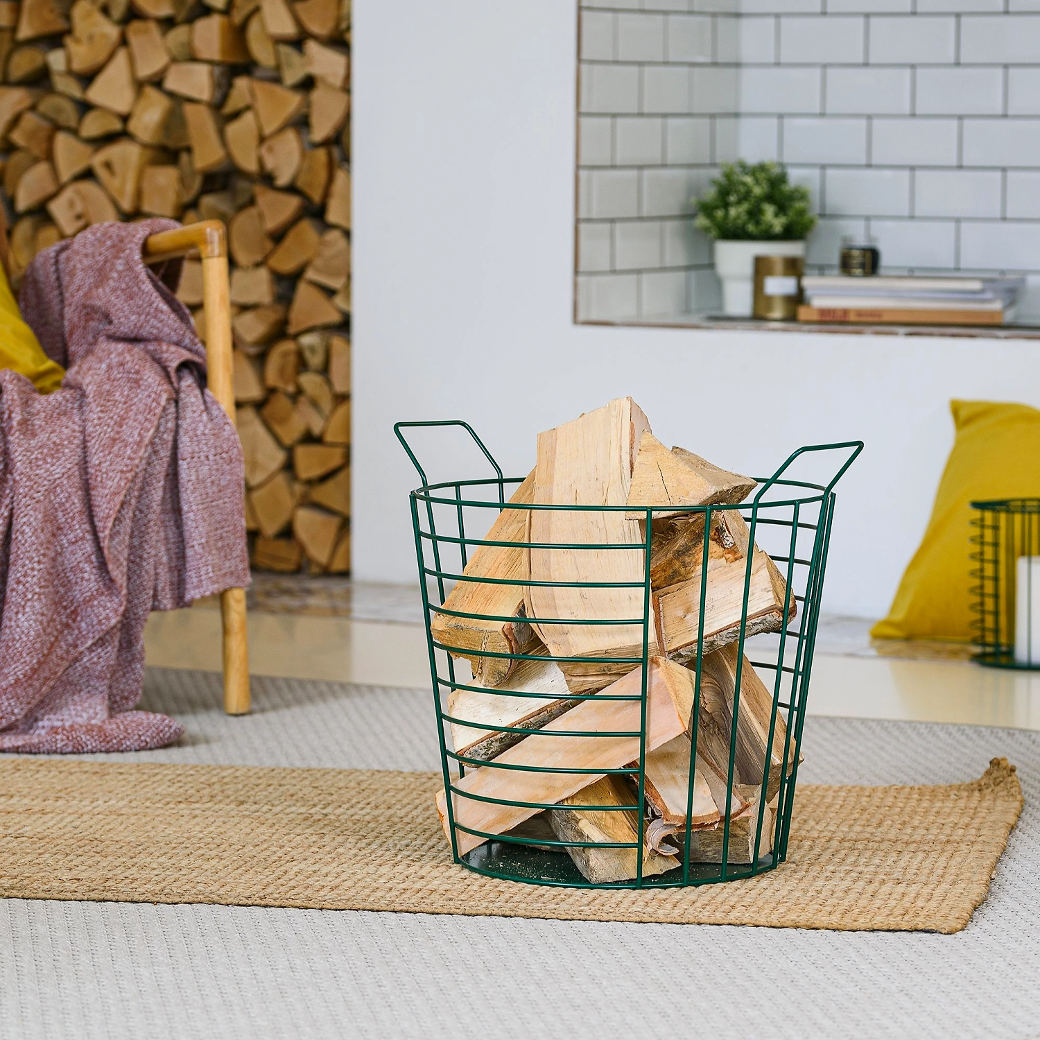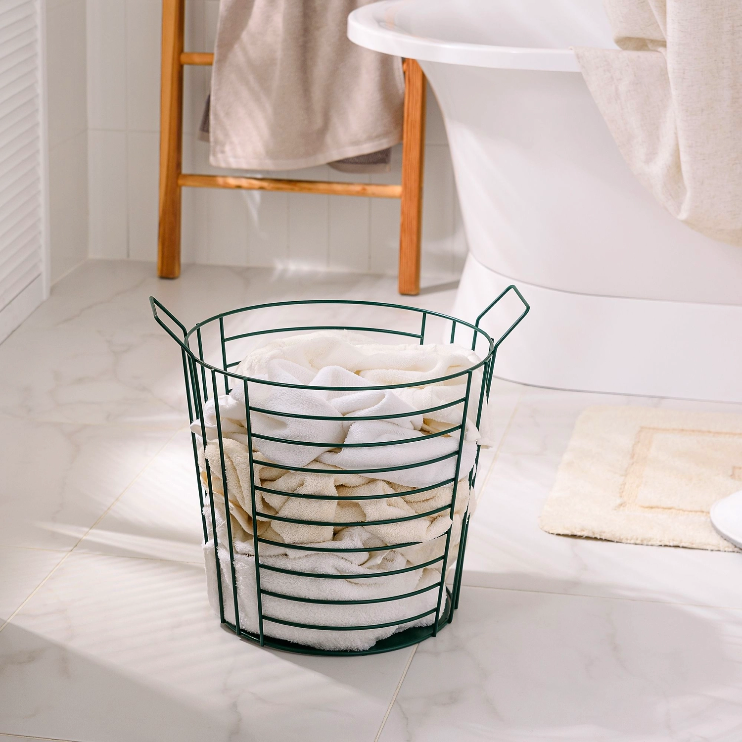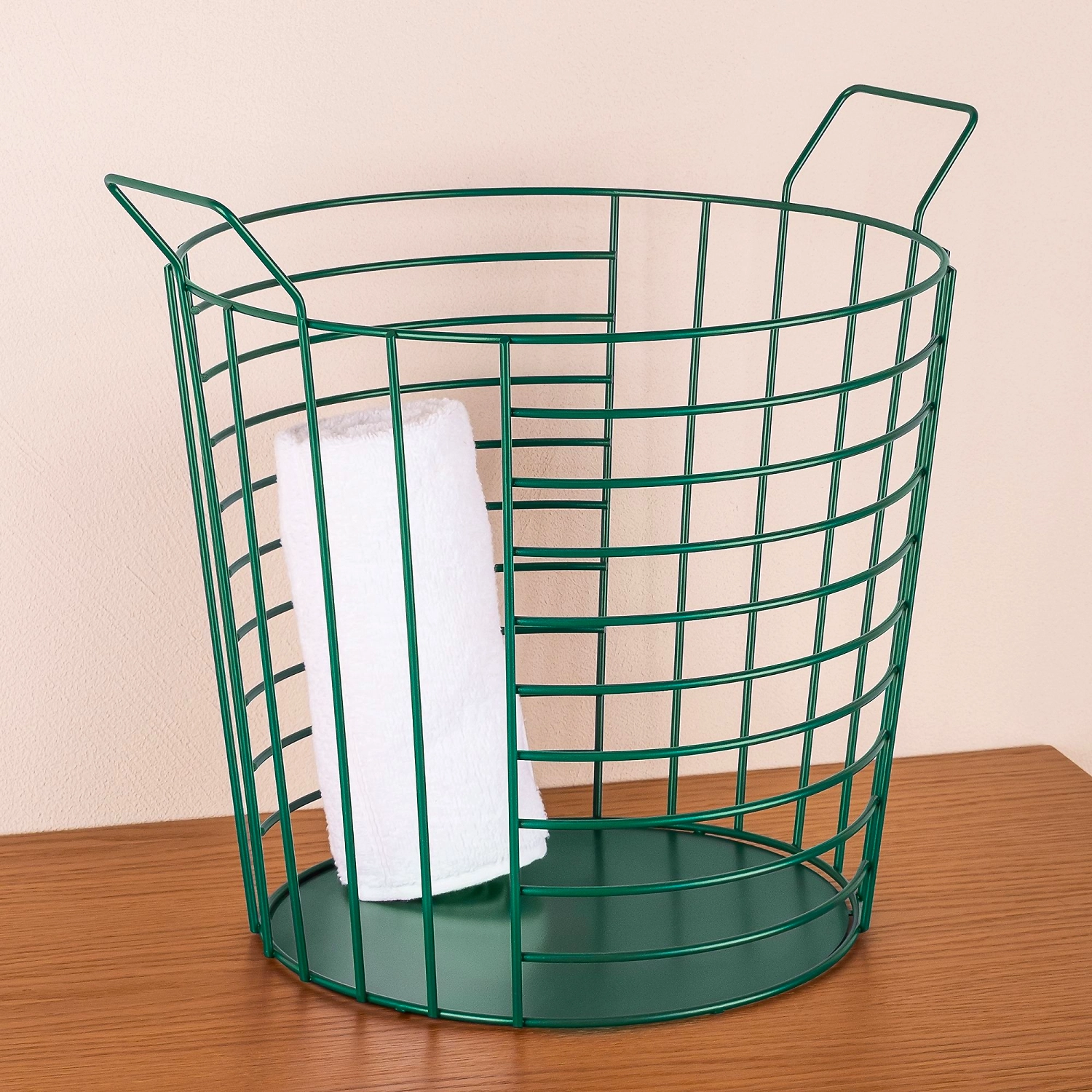 Корзина для хранения из стали имеет размеры: высота 40,6 см, длина 36,9 см, ширина 46,3 см. Аксессуар изготовлен из прочного металла с устойчивым полимерным покрытием – краской зеленого цвета.