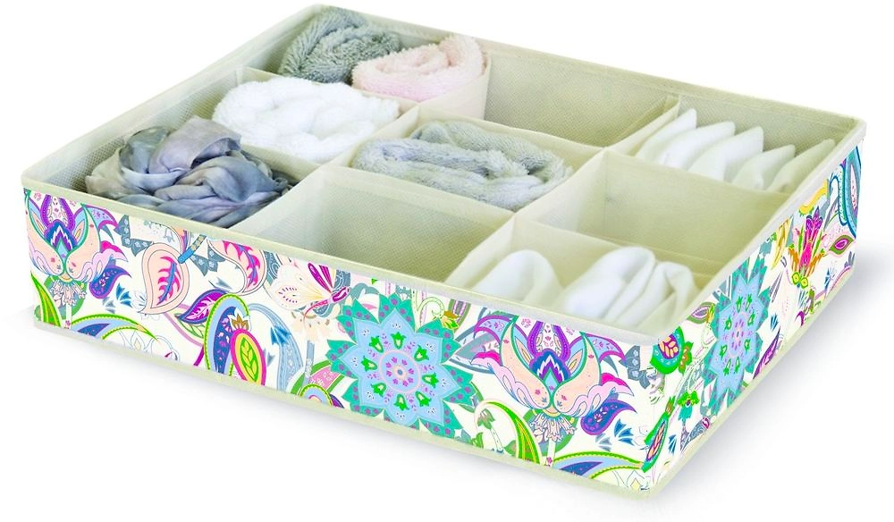 Удобный для хранения мелких вещей: белья, носков, аксессуаров. Защищает вещи от загрязнений. Органайзер изготовлен из высокопрочного нетканого материала «PET», который обеспечивает естественную вентиляцию. Легко чистится при помощи влажной губки.