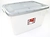 Большой пластиковый контейнер (вместительностью 75 л) прекрасно подходит для хранения различных вещей и мелочей. Имеет небольшие габариты, с легкостью помещается в шкафах и тумбах.