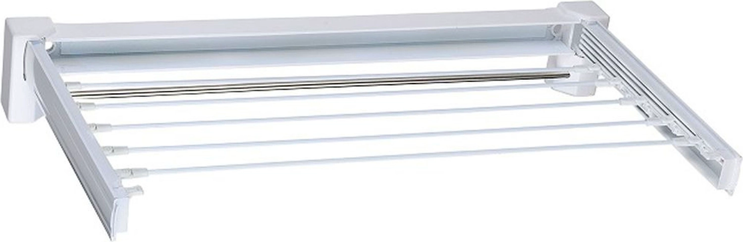 Навесная раздвижная сушилка д/белья. Материал: сталь с порошковым полимерным покрытием, пластик. Цвет пластиковых элементов: белый. Суммарная длина линий подвеса 4,2 м. Максимальная нагрузка 3,8 кг.
