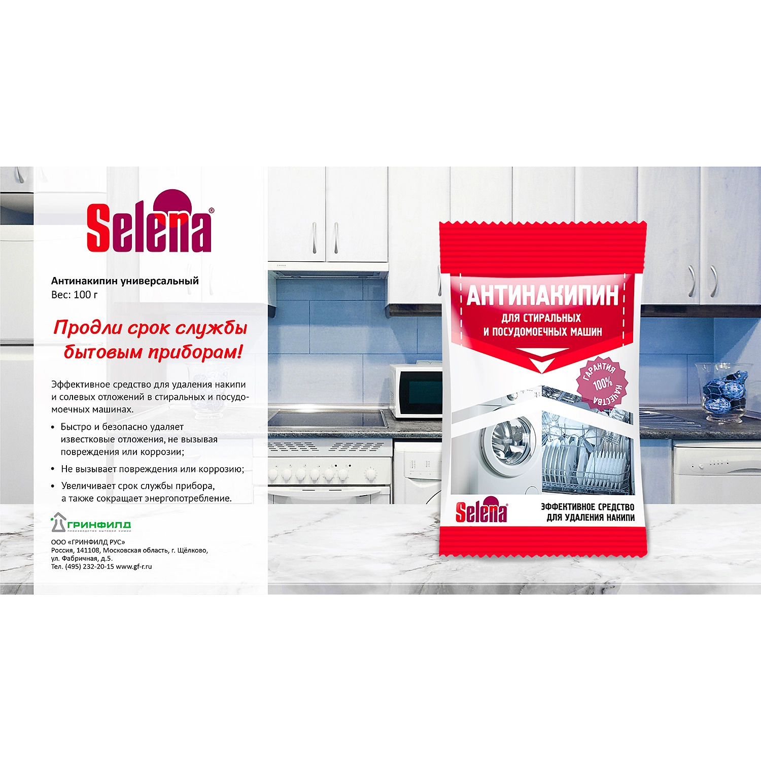 Антинакипин Selena для стиральных и посудомоечных машин 100 г