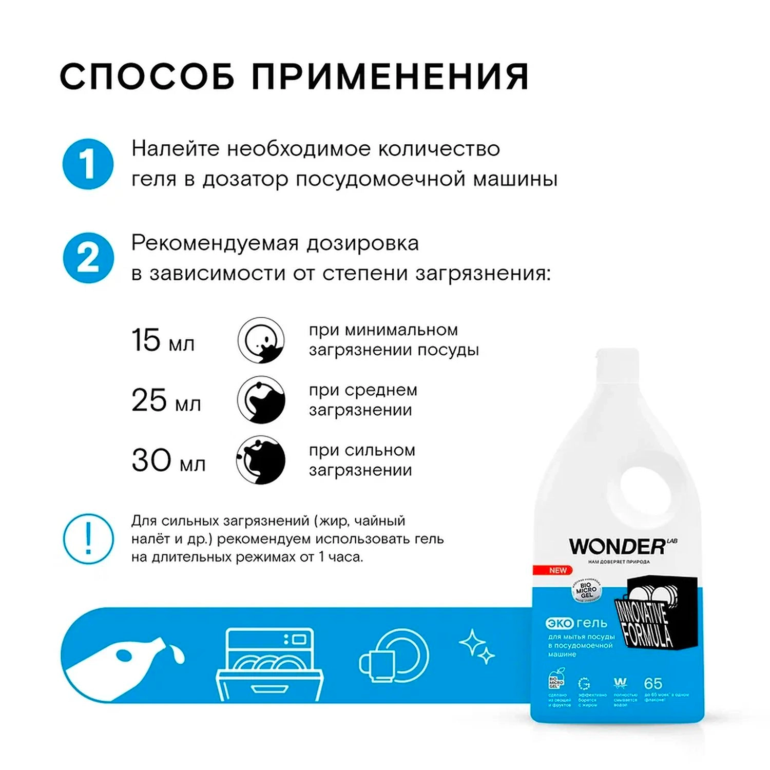 Экогель Wonder Lab для мытья посуды в посудомоечной машине, 1 л