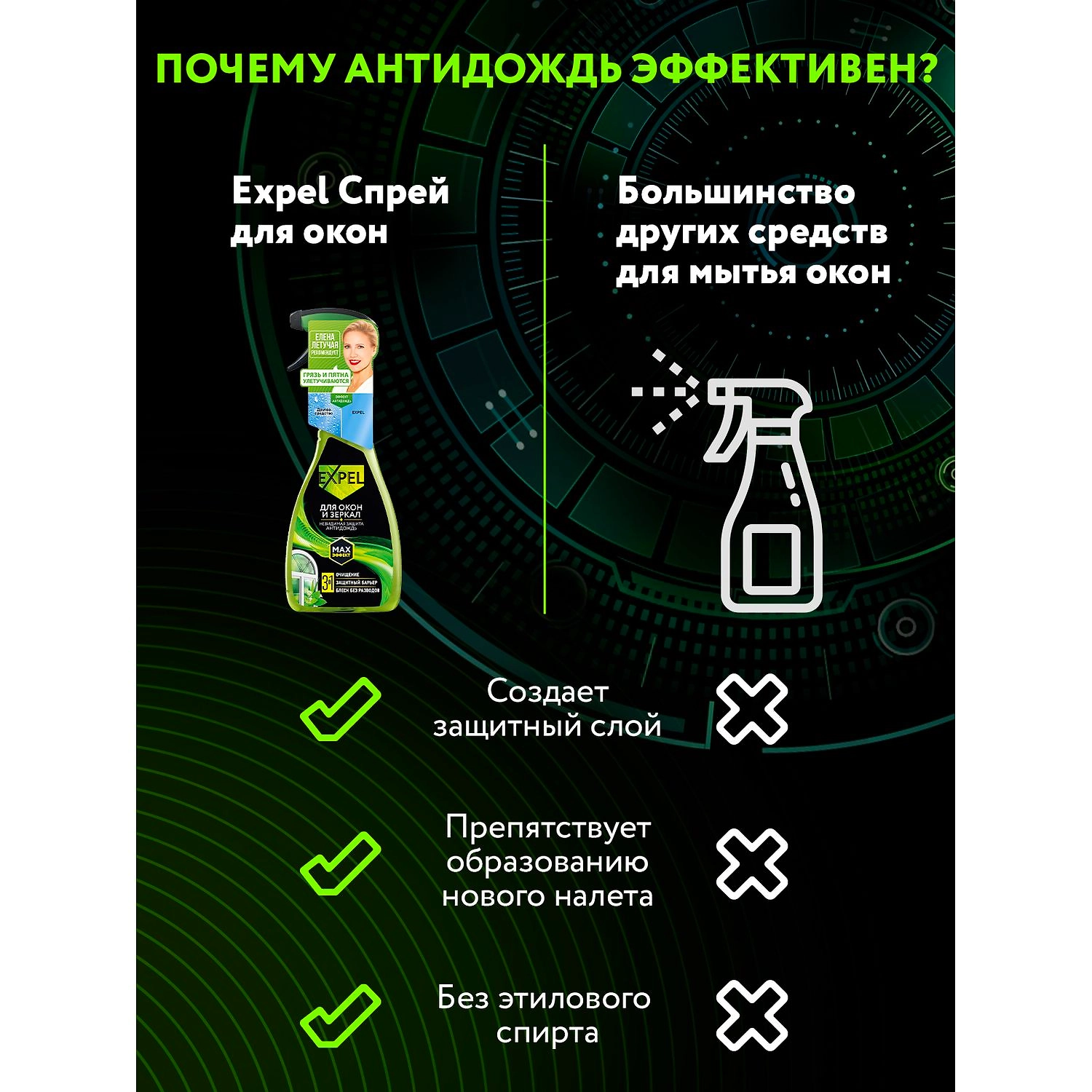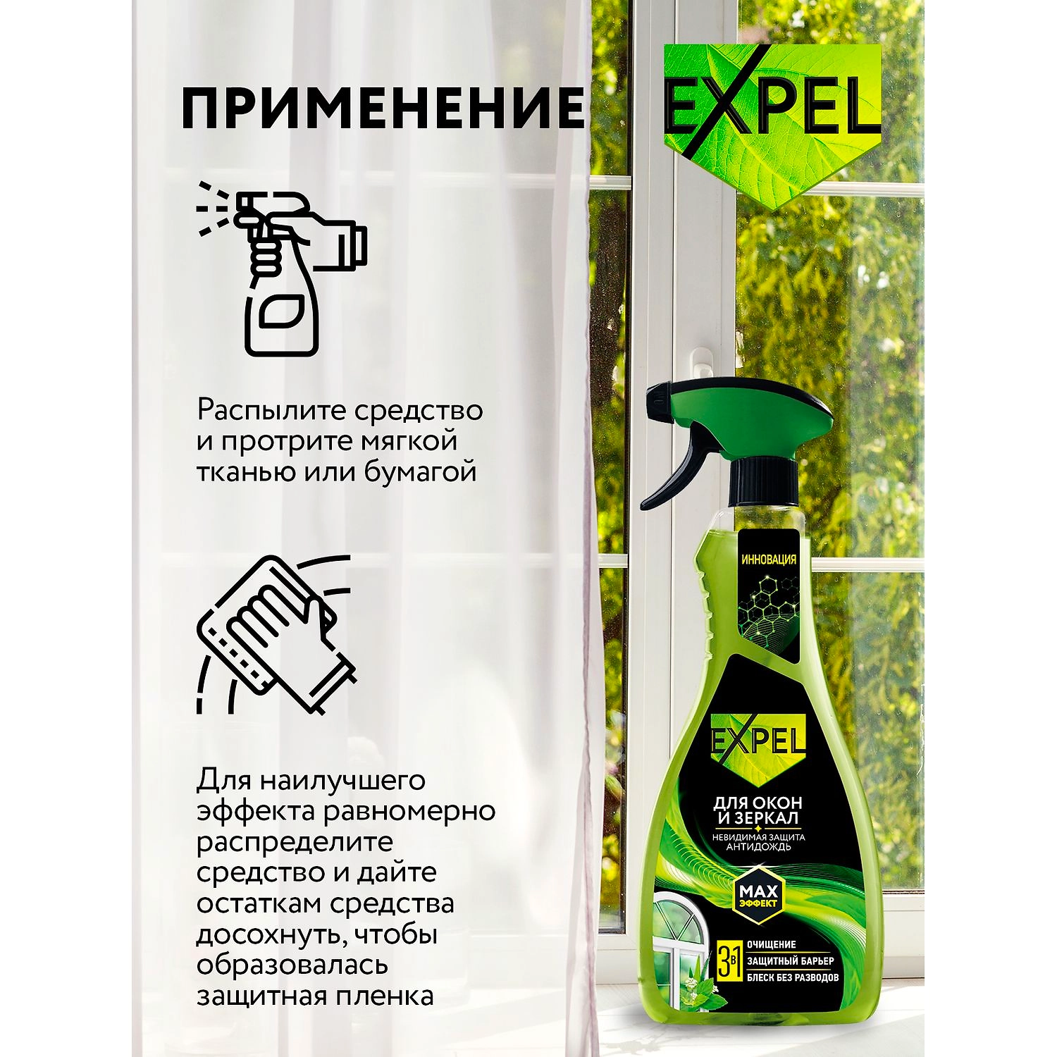 Спрей Expel Антидождь для мытья стёкол и зеркал, 450 мл