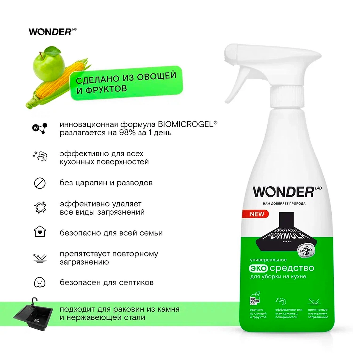 Спрей Wonder lab для кухни, жироудалитель без резкого токсичного запаха, 550 мл
