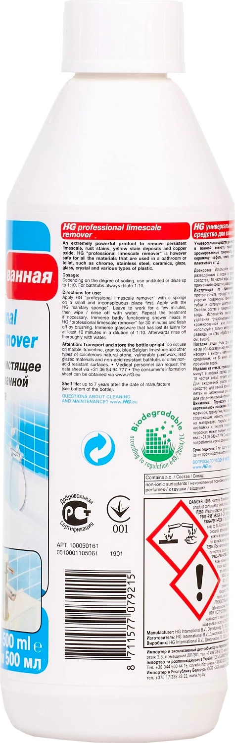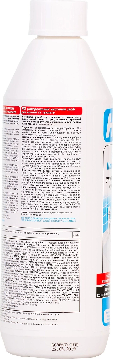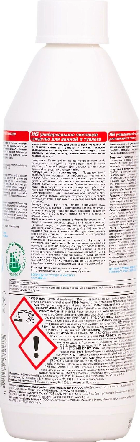 HG Универсальное чистящее средство для ванной и туалета - это профессиональное концентрированное средство для удаления известкового налёта.