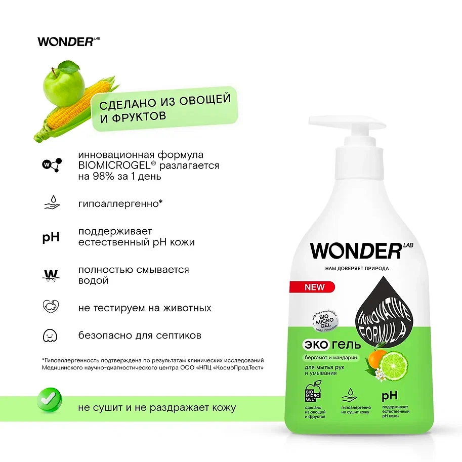 Жидкое мыло Wonder lab экологичное бергамот и мандарин, 540 мл