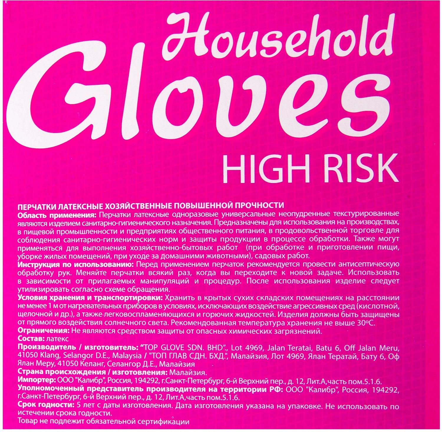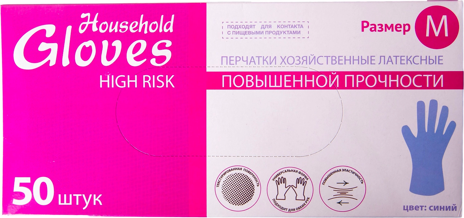 Перчатки латексные Household Gloves High Risk М в экономичной упаковке из 50 пар надежно защищают кожу рук от вредного воздействия моющих средств, грязи и влаги.