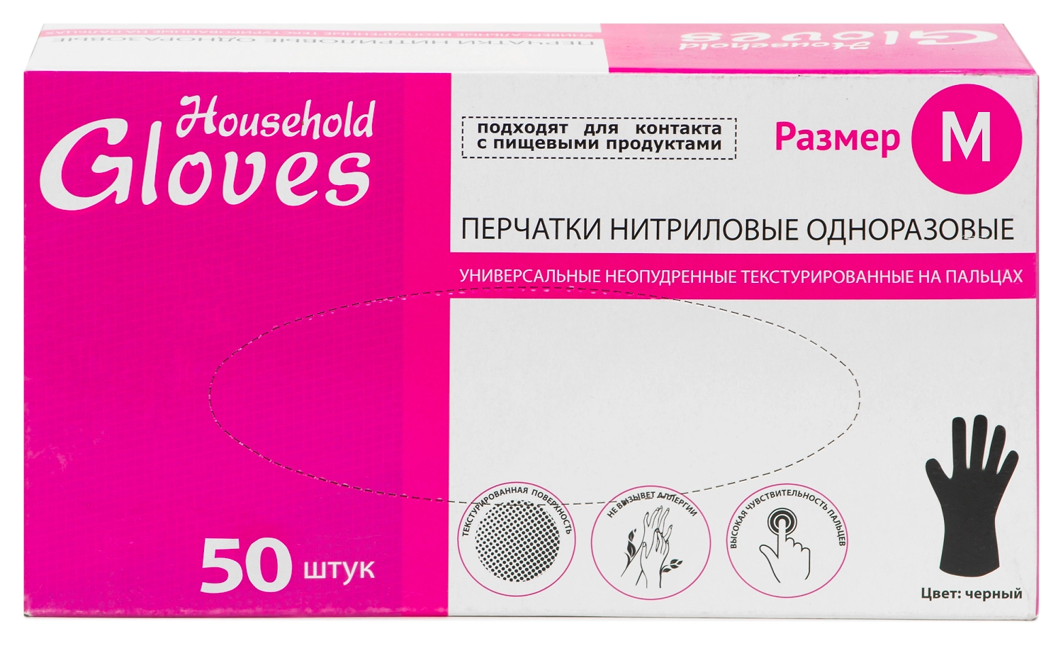 Бесшовные Перчатки Household Gloves - это надежная защита от химических соединений, бензина, масел и прочих производных нефтяной продукции. Непроницаемый синтетический материал нитрил, из которого изготовлены перчатки, используется для производства защитных покрытий, изоляционных материалов, водонепроницаемой обуви и одежды.