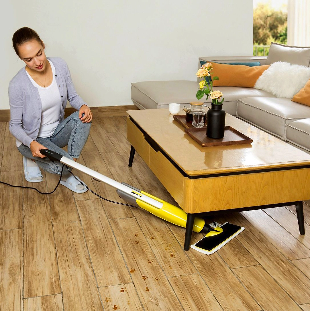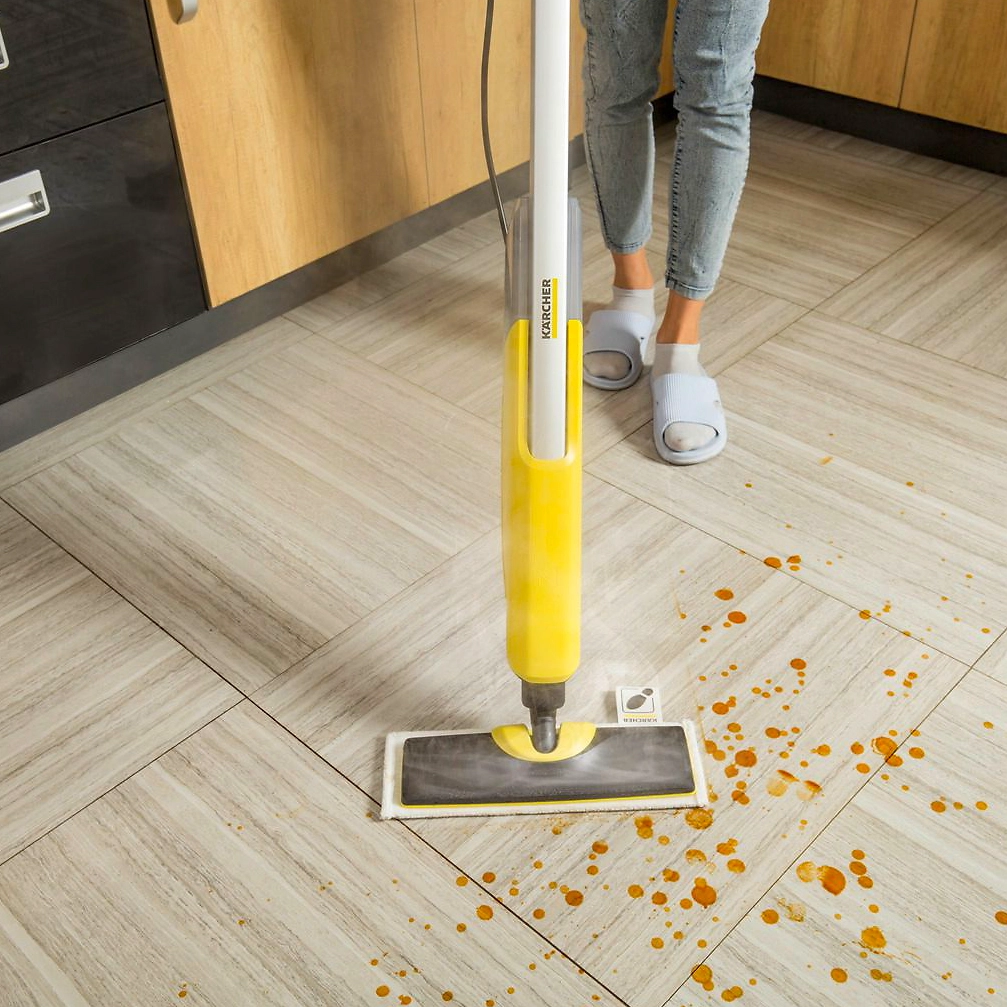 Пароочиститель Karcher SC 2 Upright EasyFix 1600 Вт - уникальное электрическое приспособление для оперативной влажной уборки без прямого контакта с грязью. В комплект входят две насадки - щетка для пола и плоская щетка.