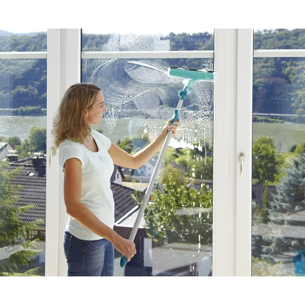 Стеклоочиститель телескопический Leifheit создан для обеспечения максимально комфортных условий и требуемой эффективности при мытье оконных рам, витрин, стеклянных фасадов, зеркал и иных плоскостей с
