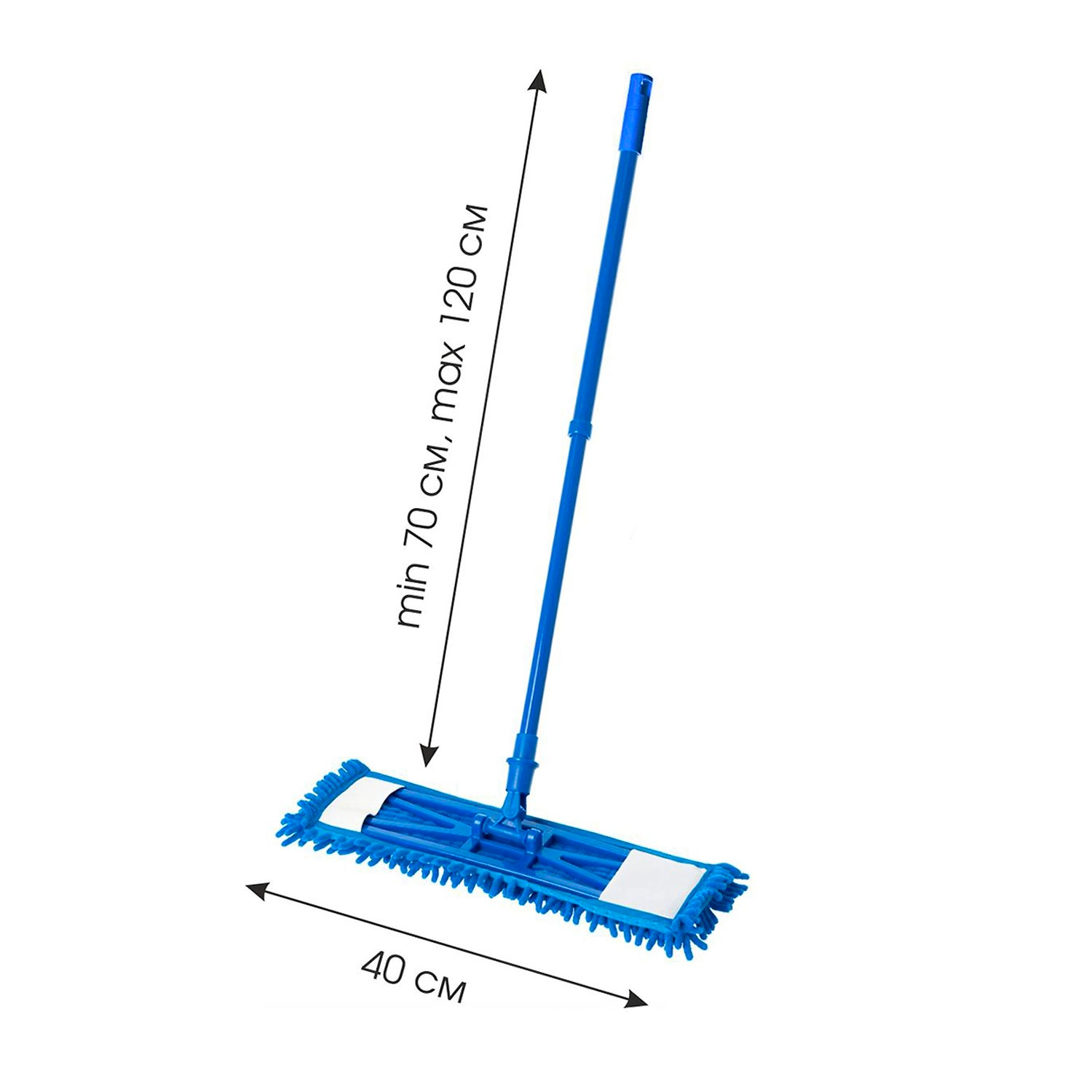 Удлиненные «пальчики» шенилловой насадки особенно тщательно вычищают полы с неровностями, рифленой, текстурированной поверхностью, швы керамической плитки. Шенилловую насадку можно использовать как для влажной, так и для сухой уборки, а также для полировки поверхностей. Удобная телескопическая ручка позволяет подогнать длины швабры под ваш рост. Съемная насадка легко и быстро крепится на липучки, можно стирать при температуре 40 градусов.