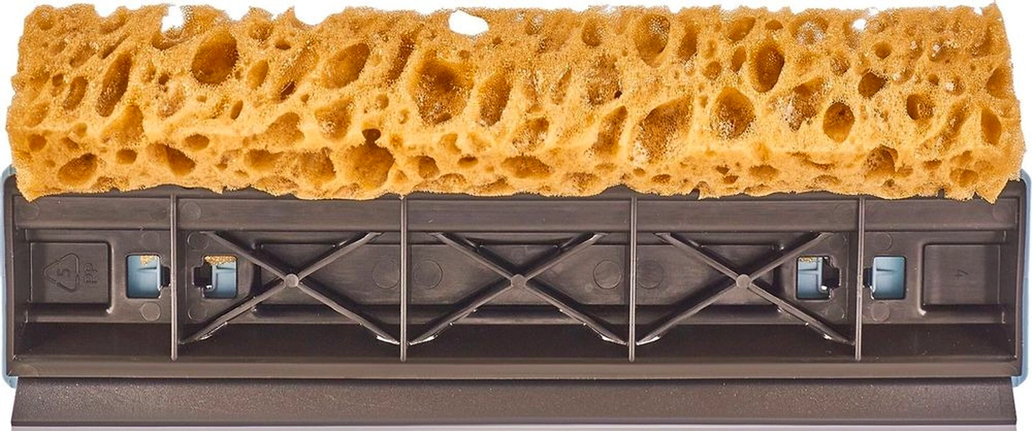 Щетка для мытья окон с абсолютно с новым типом губки. 3D поры губки улучшают моющий эффект, экономят моющее средство. Прочность в 5 раз выше обычной губки. Мягкий водосгон удаляет влагу, без разводов.