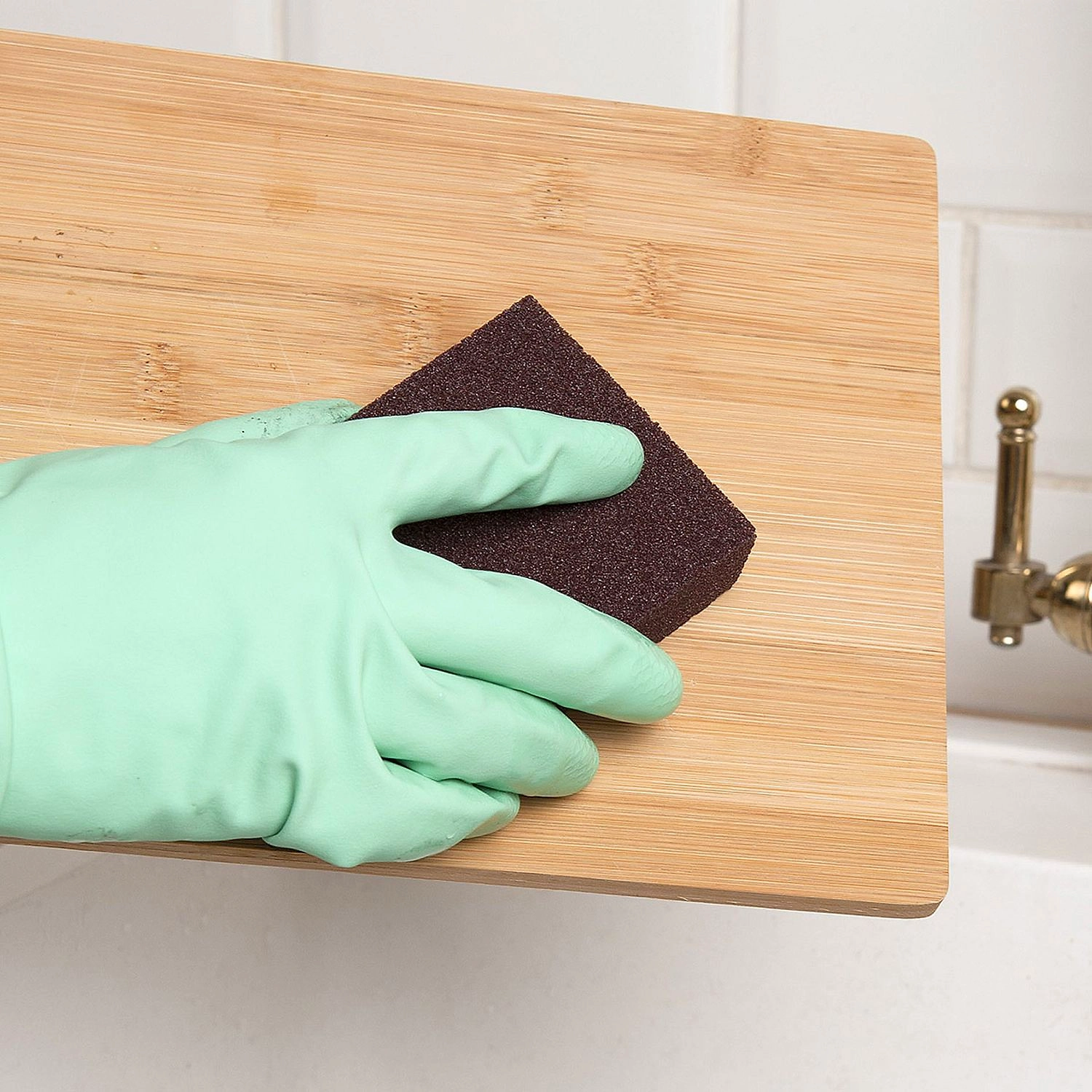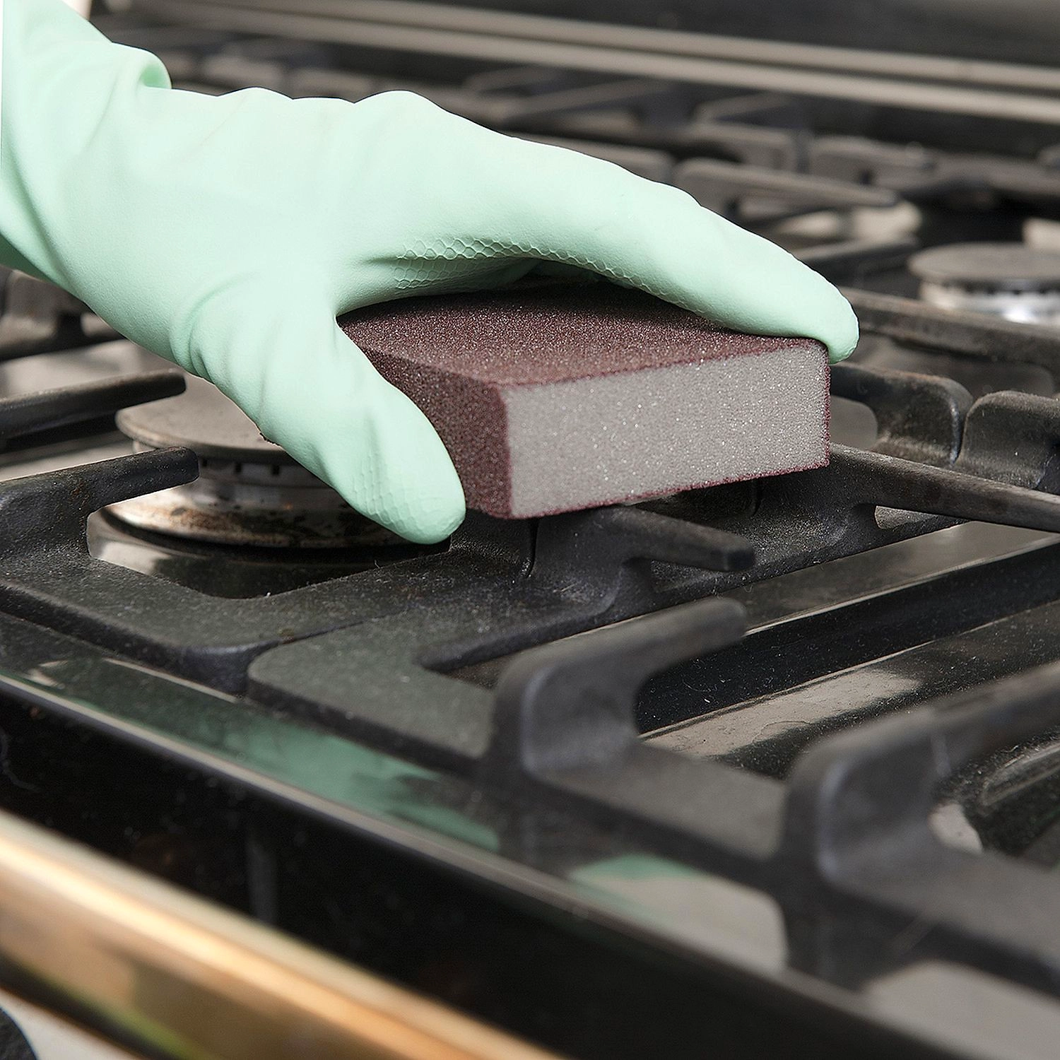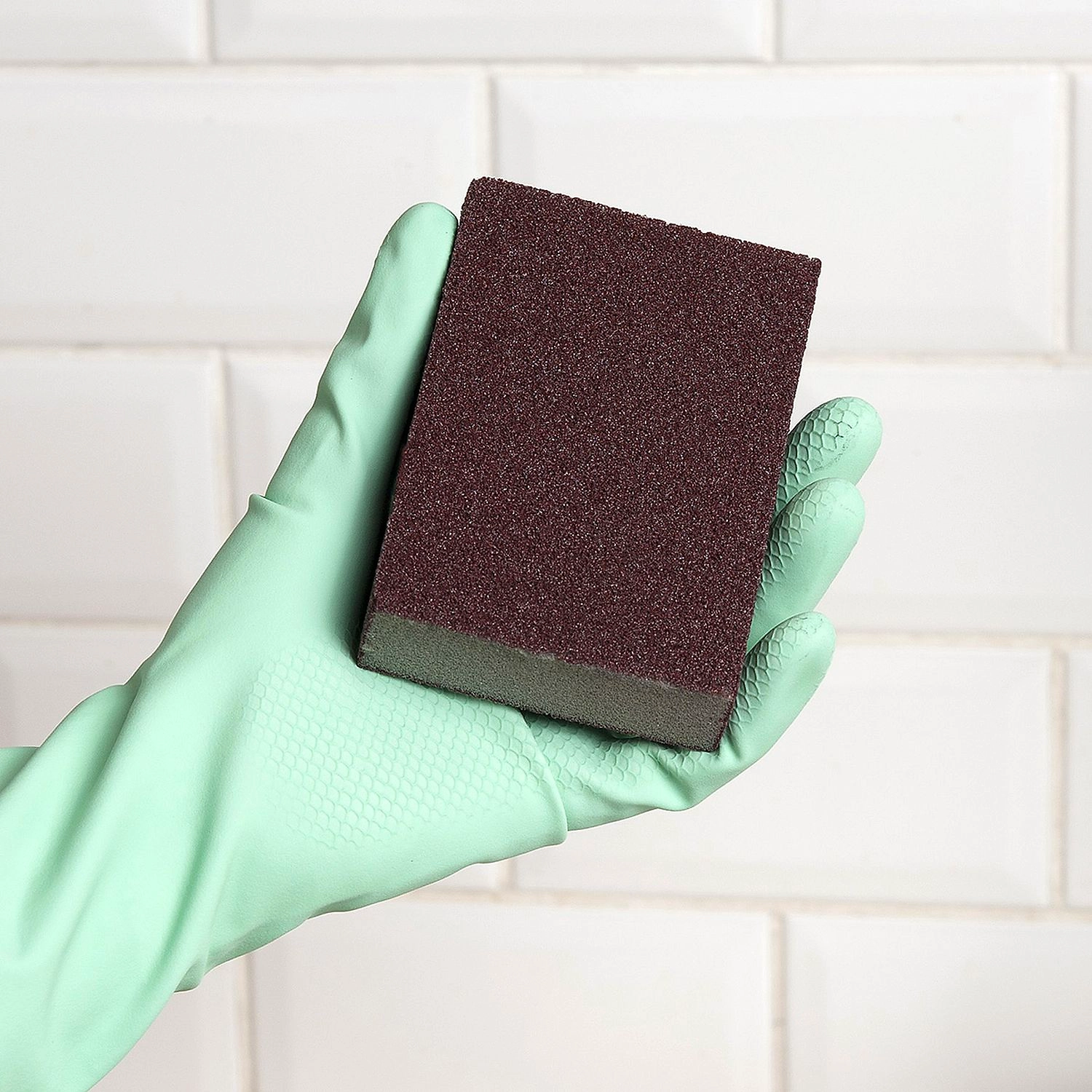 Губка скрабер Home Queen превосходно справляется со сложными загрязнением и налетом без применения моющих средств.