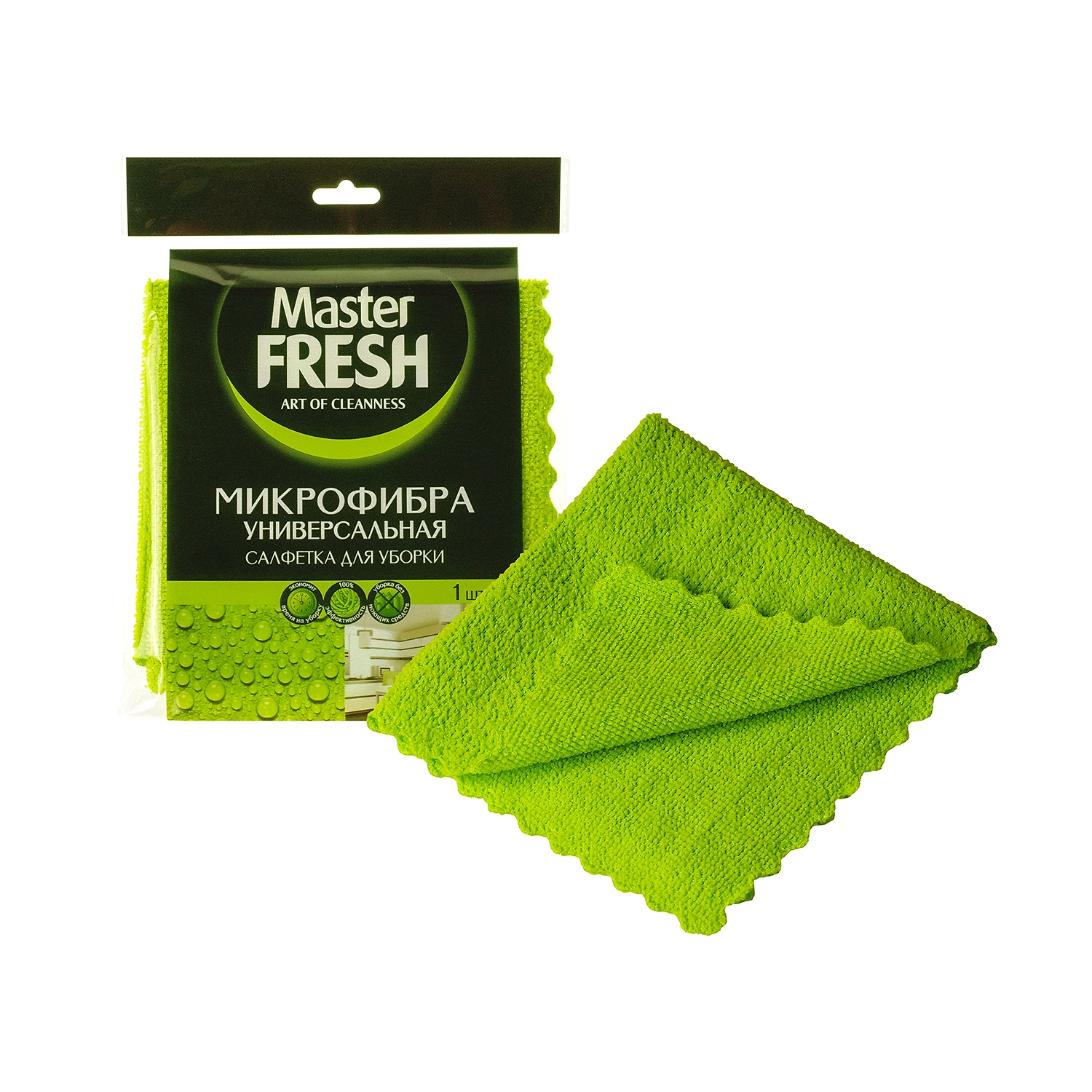 Универсальная салфетка Master FRESH для уборки изготовлена из уникального материала - микрофибры, которая позволяет делать уборку без применения моющих средств.