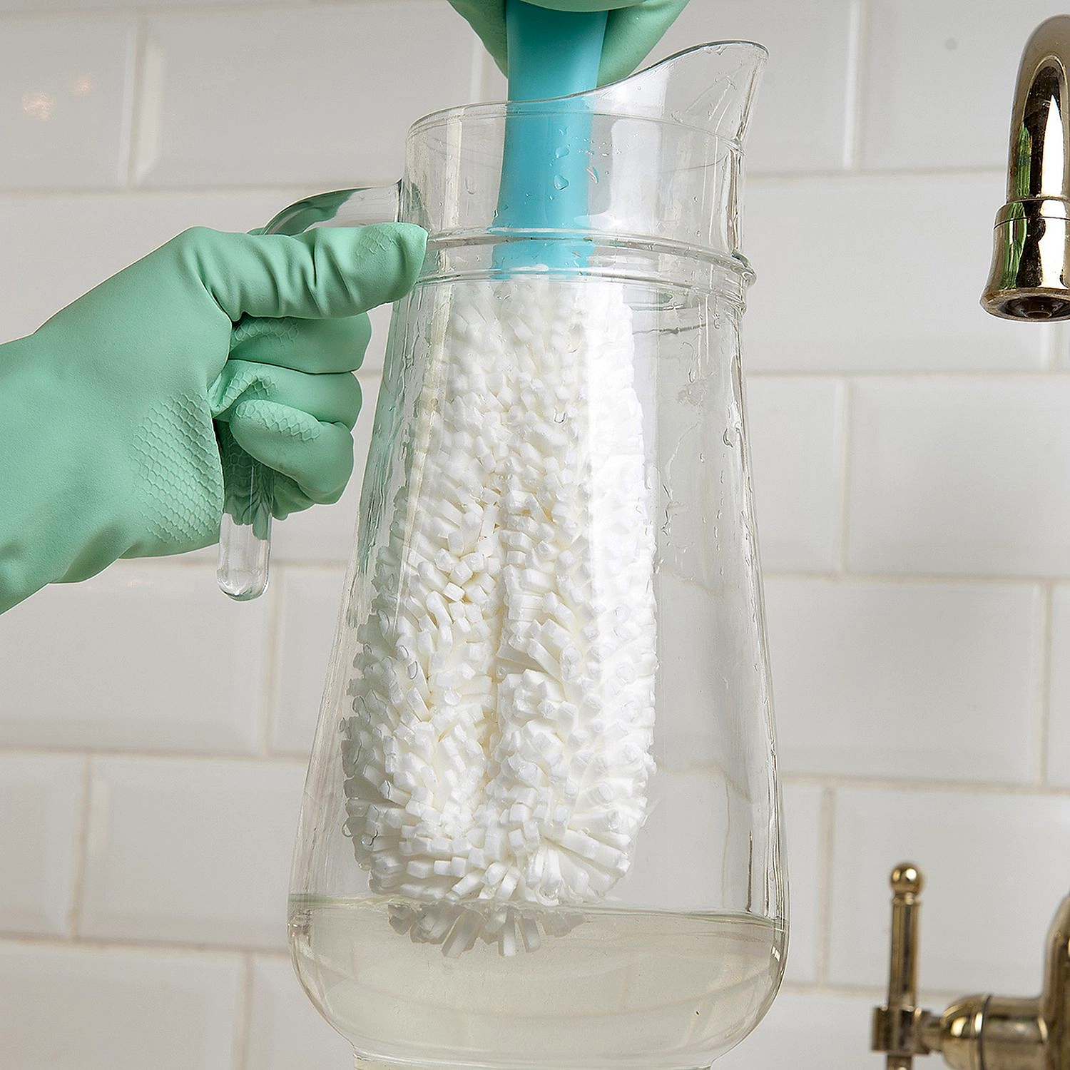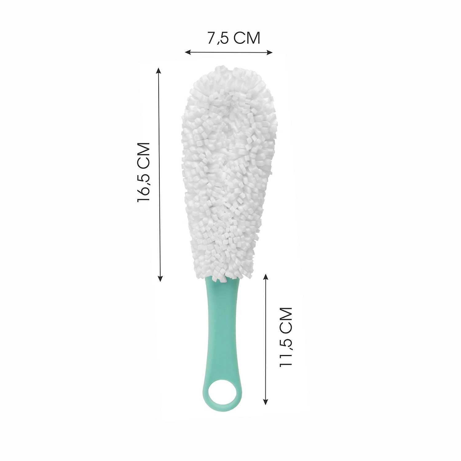 Отлично удаляет загрязнения; можно придать нужный изгиб; не деформируется со временем; устойчив к бытовой химии и моющим средствам; не привлекает бактерии и препятствует образованию грибка. Для мытья бокалов, чашек, ваз, банок. Мягко и бережно очищает хрупкую посуду.