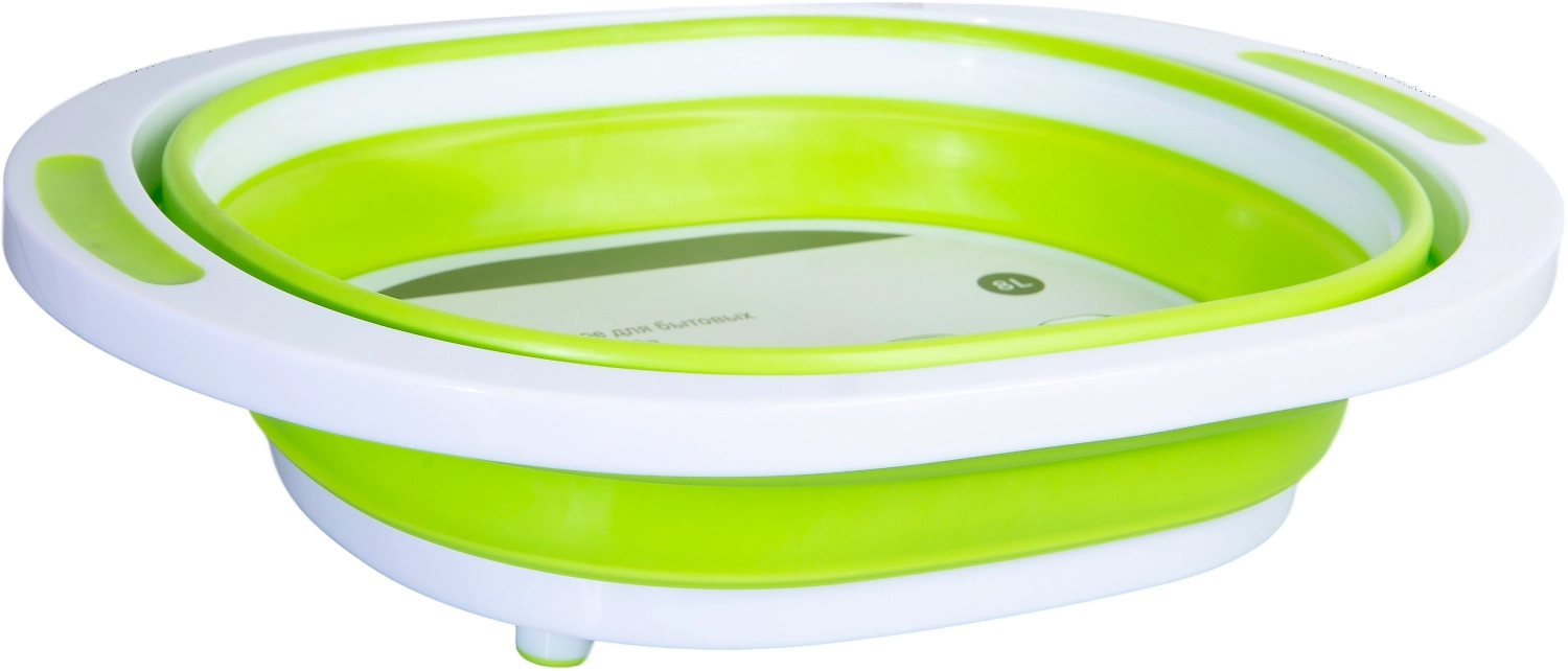 Складной таз из прочного пластика имеет компактный дизайн, легко чистится и переносится, удобно хранится, предназначен для бытовых нужд, может использоваться как разделочная доска.