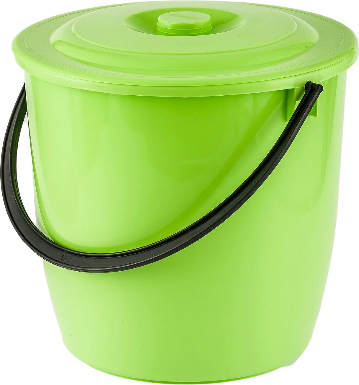 Пластмассовое круглое ведро с ручкой российской торговой марки Elfe плотно закрывается крышкой.